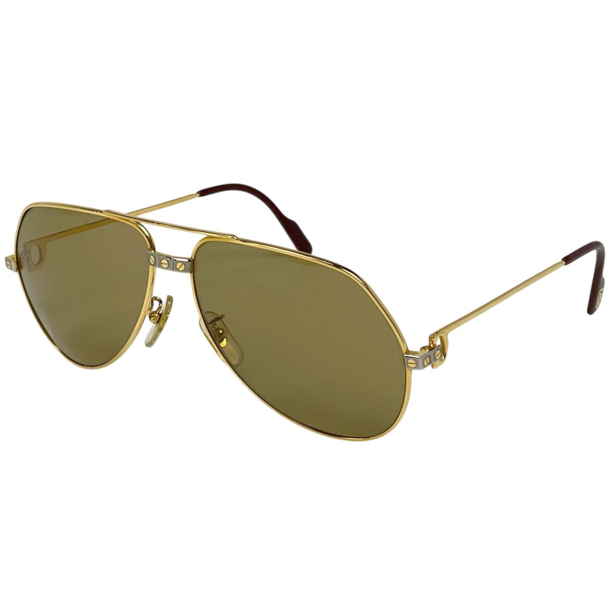 カルティエ CARTIER サントス サングラス アイウェア ティアドロップ サングラス GP プラスチック ゴールド レディース 【中古】