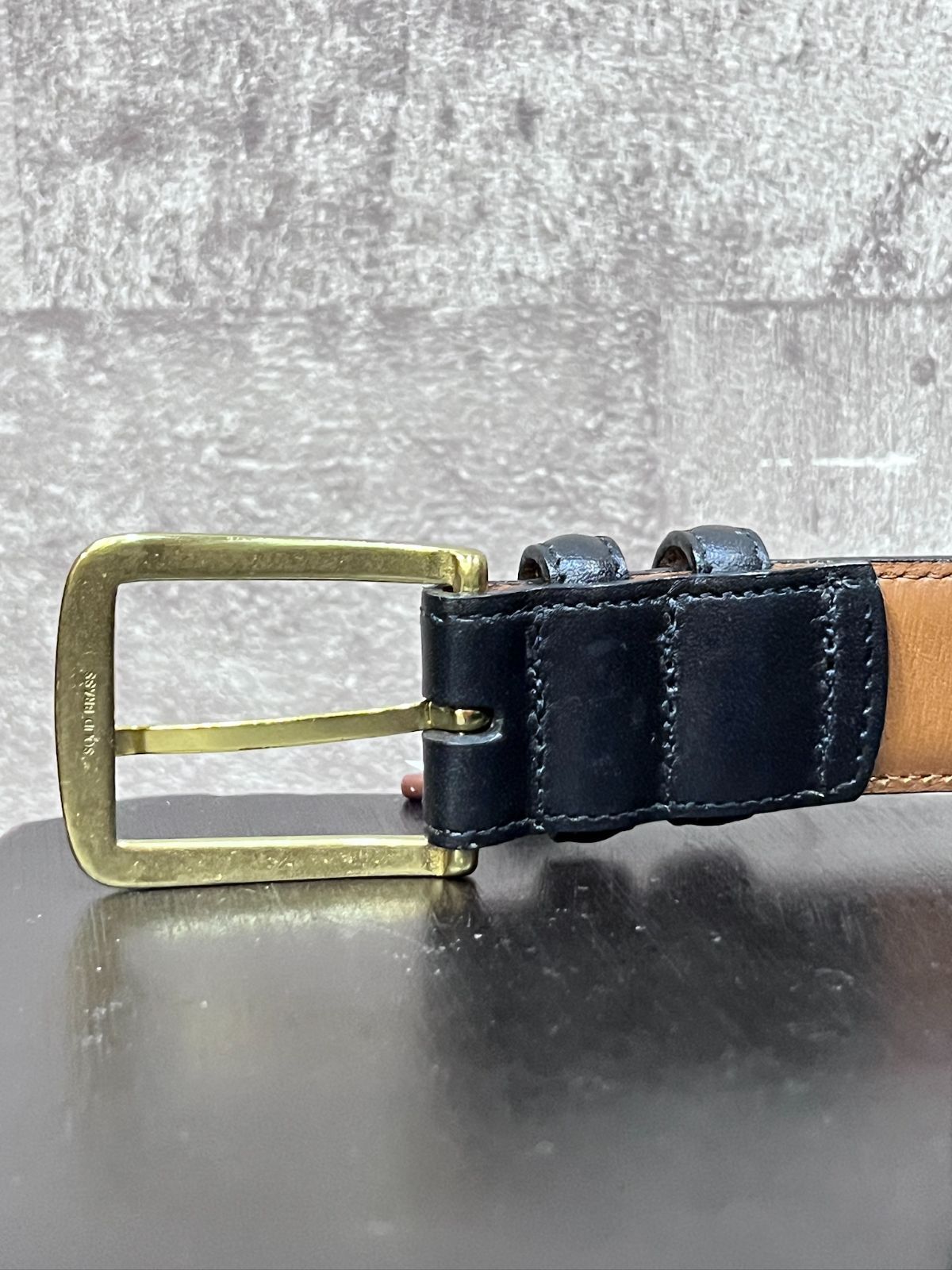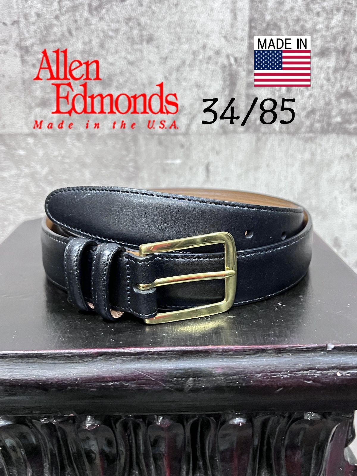 USA製 Allen Edmonds カーフレザーベルト 34/85 ブラック ゴールド アレン・エドモンズ 24001B5