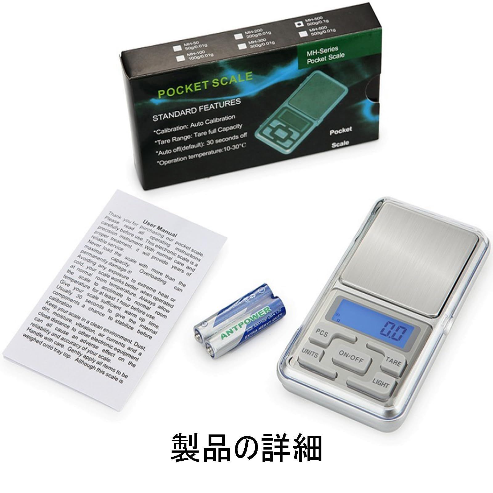 ポケット デジタル スケール はかり 秤 0.01g-500g 精密 携帯タイプ 計量器 はかり 業務用 プロ用 電子天秤 英語ボタン バッテリー付き 取扱説明書付き