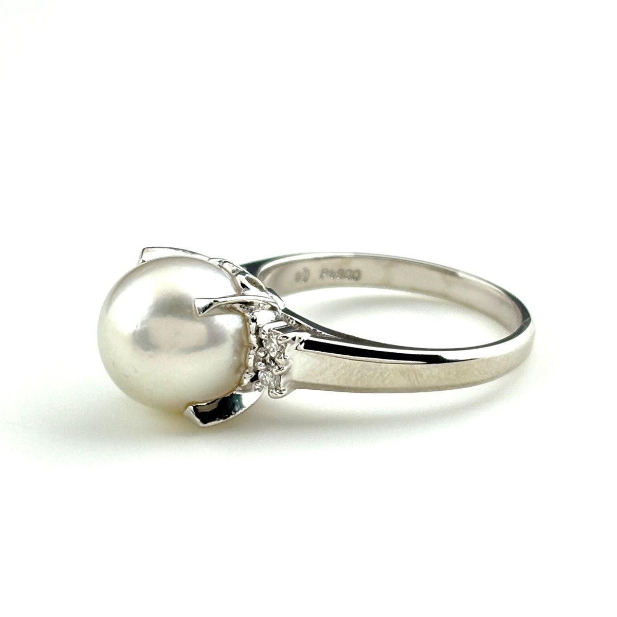【素材】Pt900、パール、ダイヤモンド【実寸サイズ】約12.5号