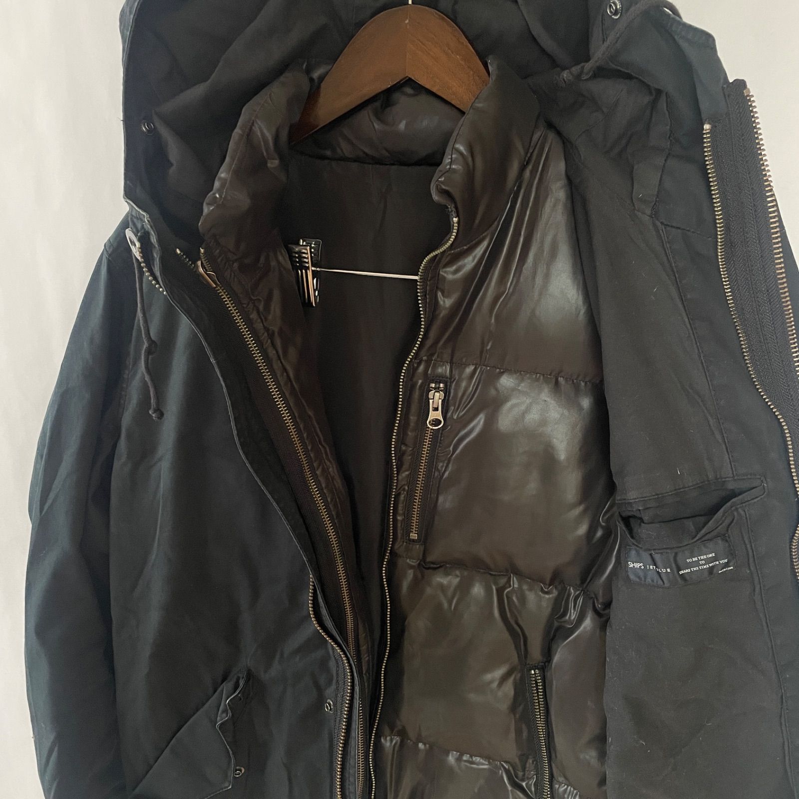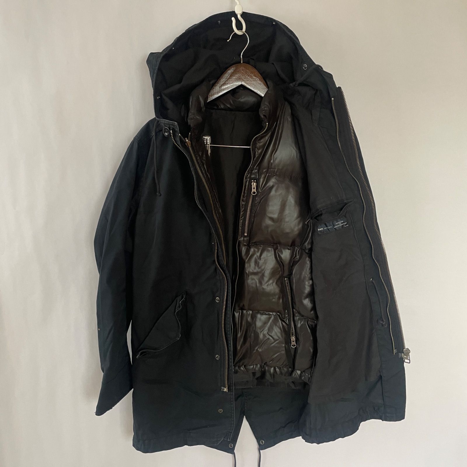 【美品】SHIPS JET BLUE メンズ 2way モッズコート ダウンジャケット 中綿 ダウンベスト ライナー付 黒 ブラック 綿100%