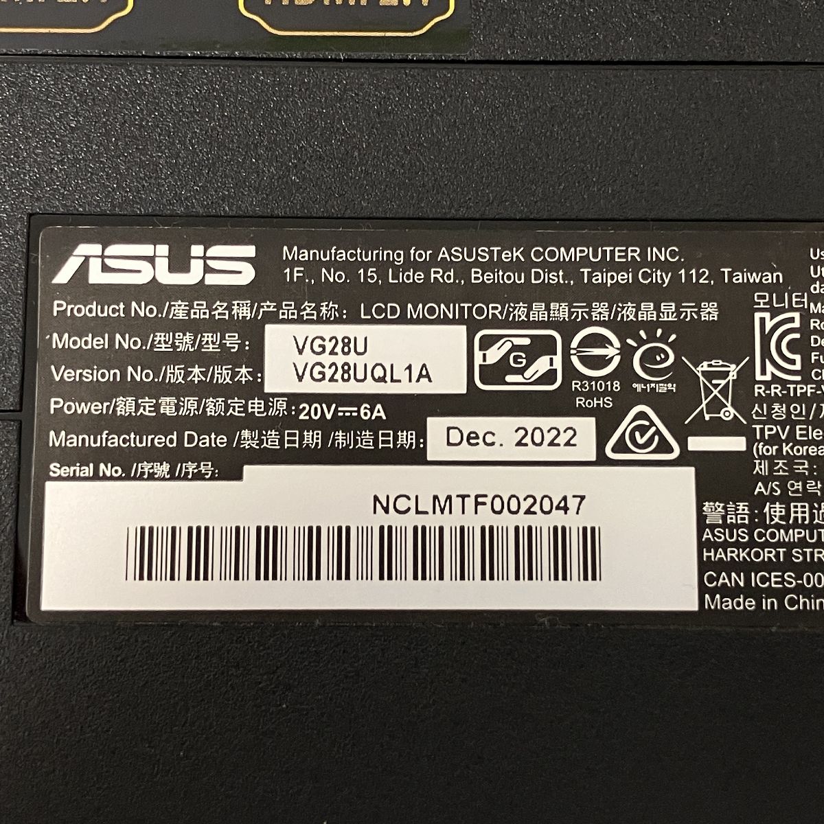 こちらは「ASUS TUF Gaming VG28UQL1A 28型 ゲーミング モニター 液晶ディスプレイ 中古 」でございます。