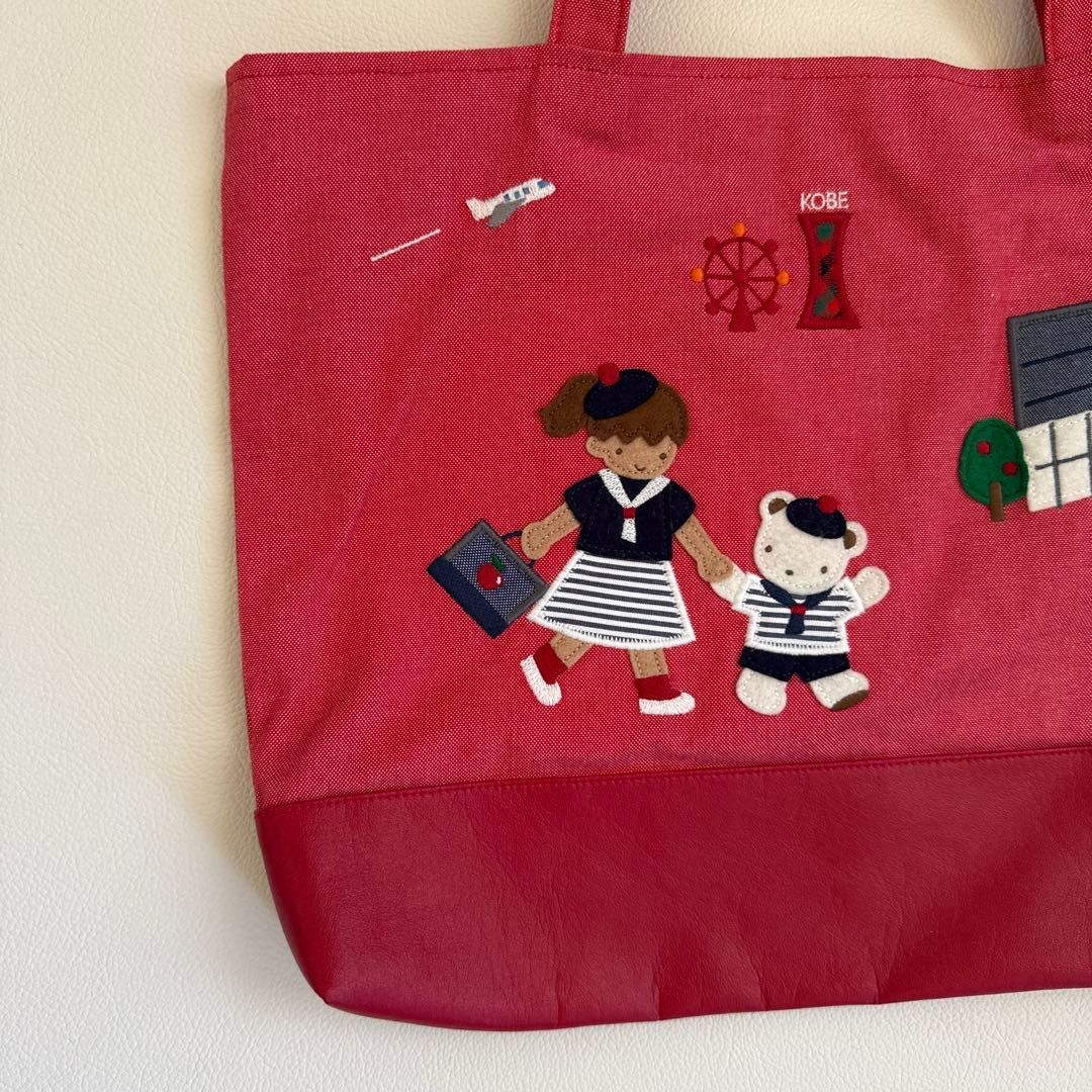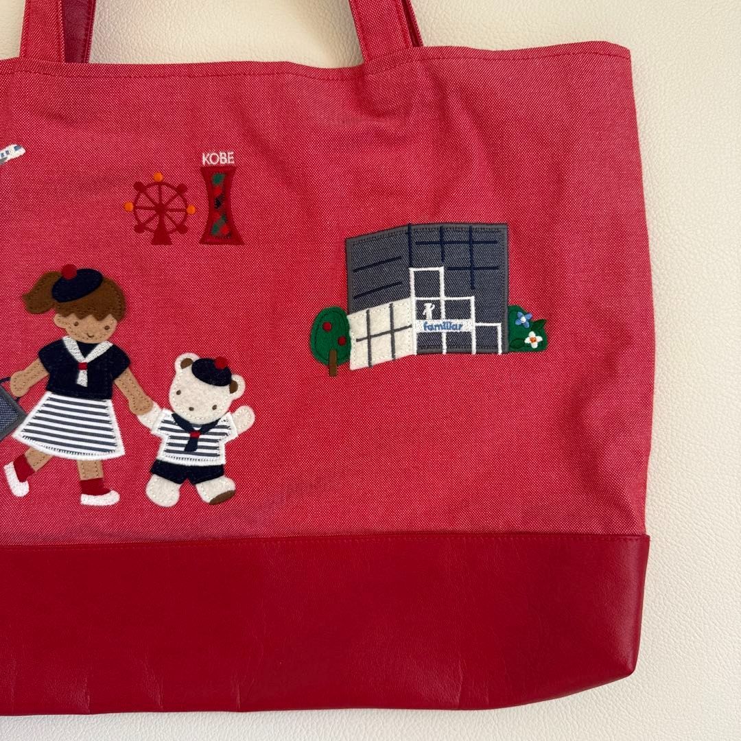 Familiar(ファミリア) 神戸モチーフ デニムバッグ/レッスンバッグ (赤/レッド)