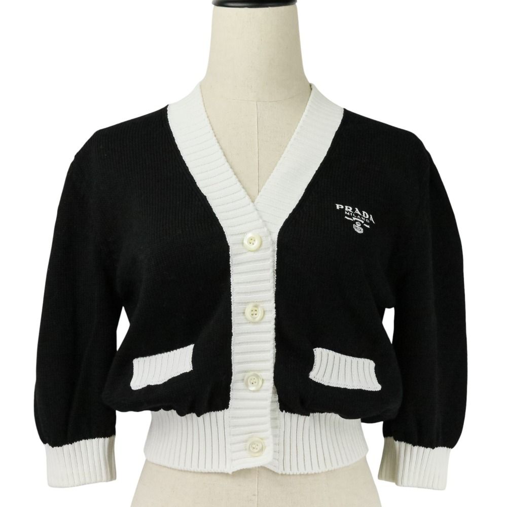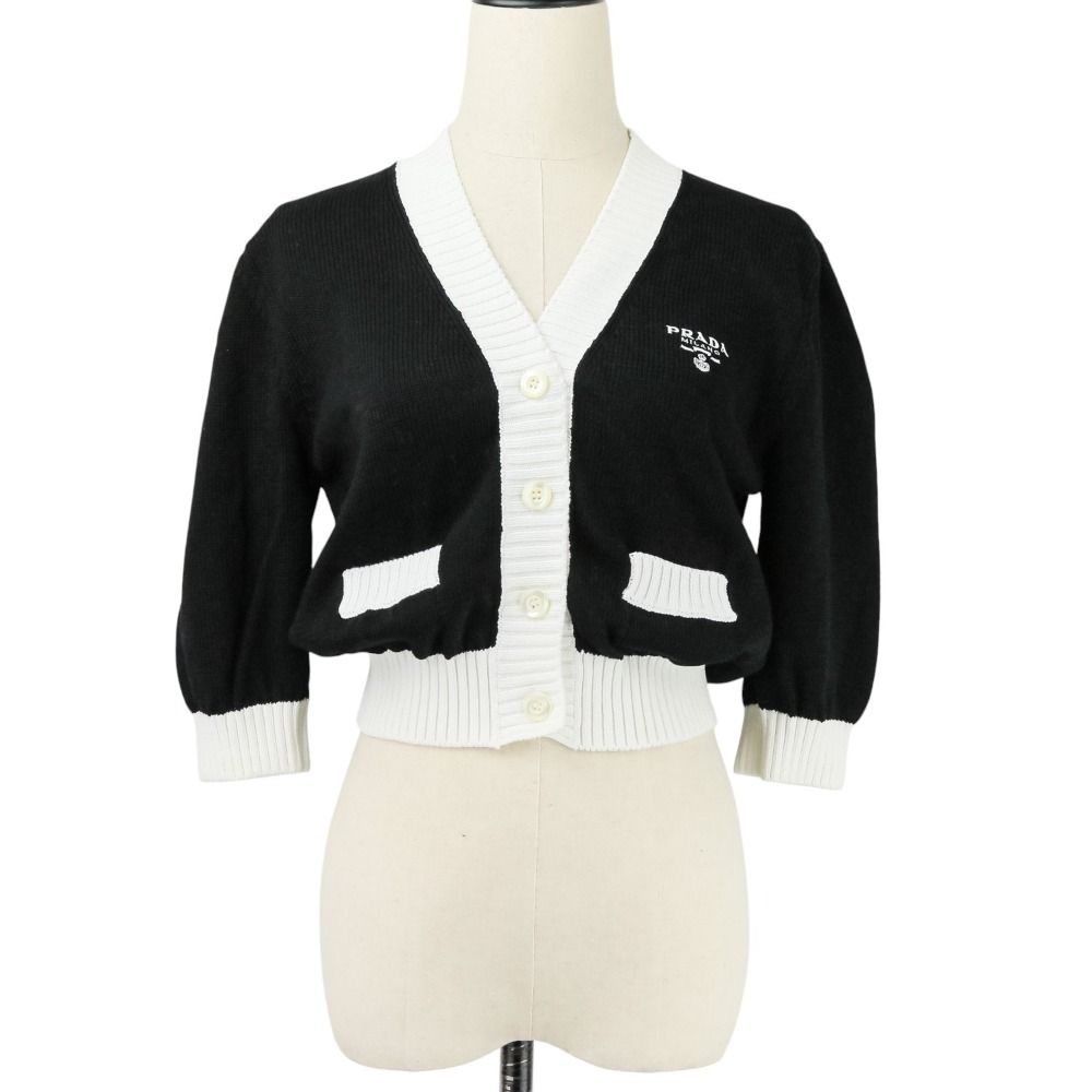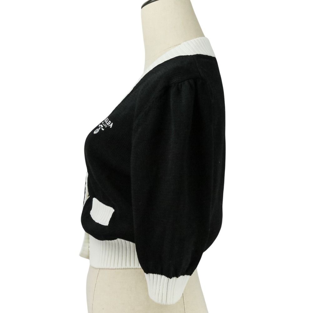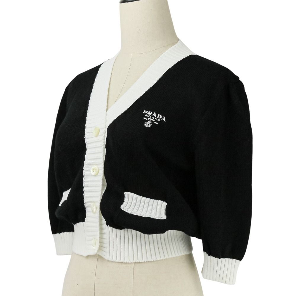 【商品名】PRADA プラダ 現行モデル エンブロイダリー ロゴ クロップド ニット カーディガン P25I04 サイズ40 ブラック ホワイト