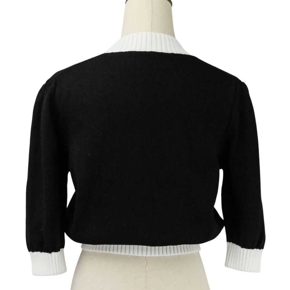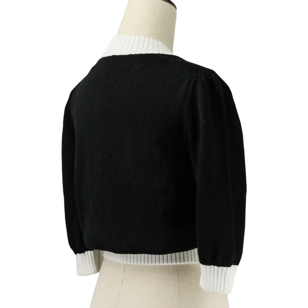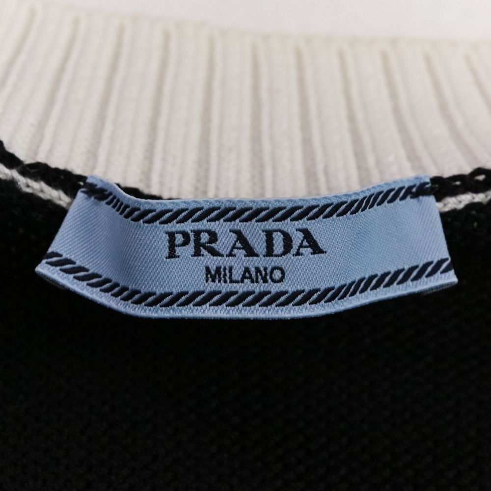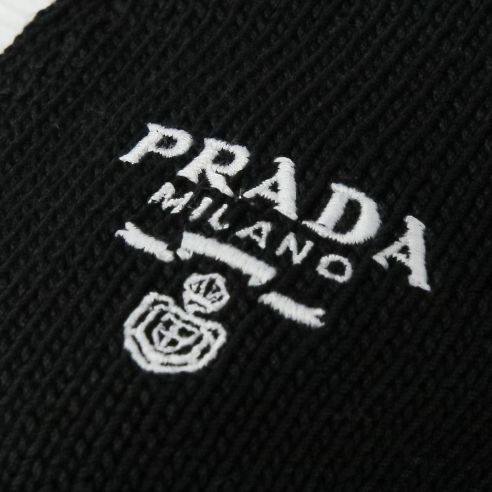 【商品名】PRADA プラダ 現行モデル エンブロイダリー ロゴ クロップド ニット カーディガン P25I04 サイズ40 ブラック ホワイト