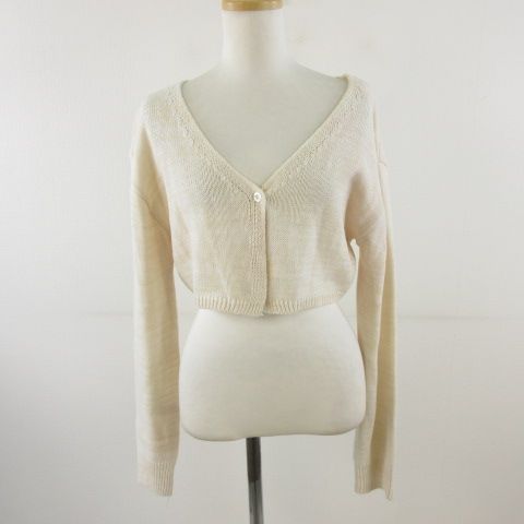 【商品名】JENNY EYELET ニットカーディガン 長袖 ショート丈 ベージュ *T161