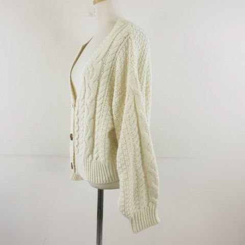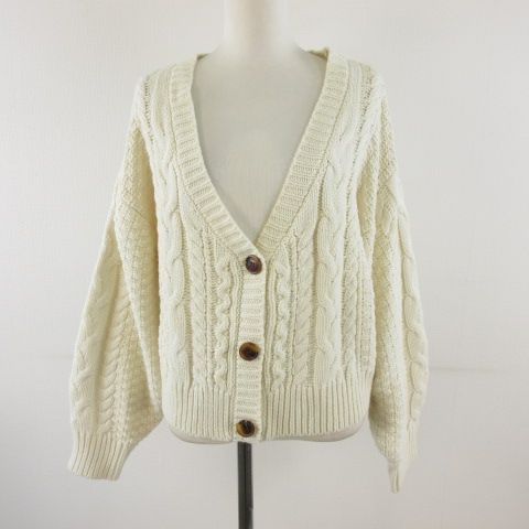 【商品名】ニットカーディガン 長袖 Vネック オフホワイト 白 M *T192