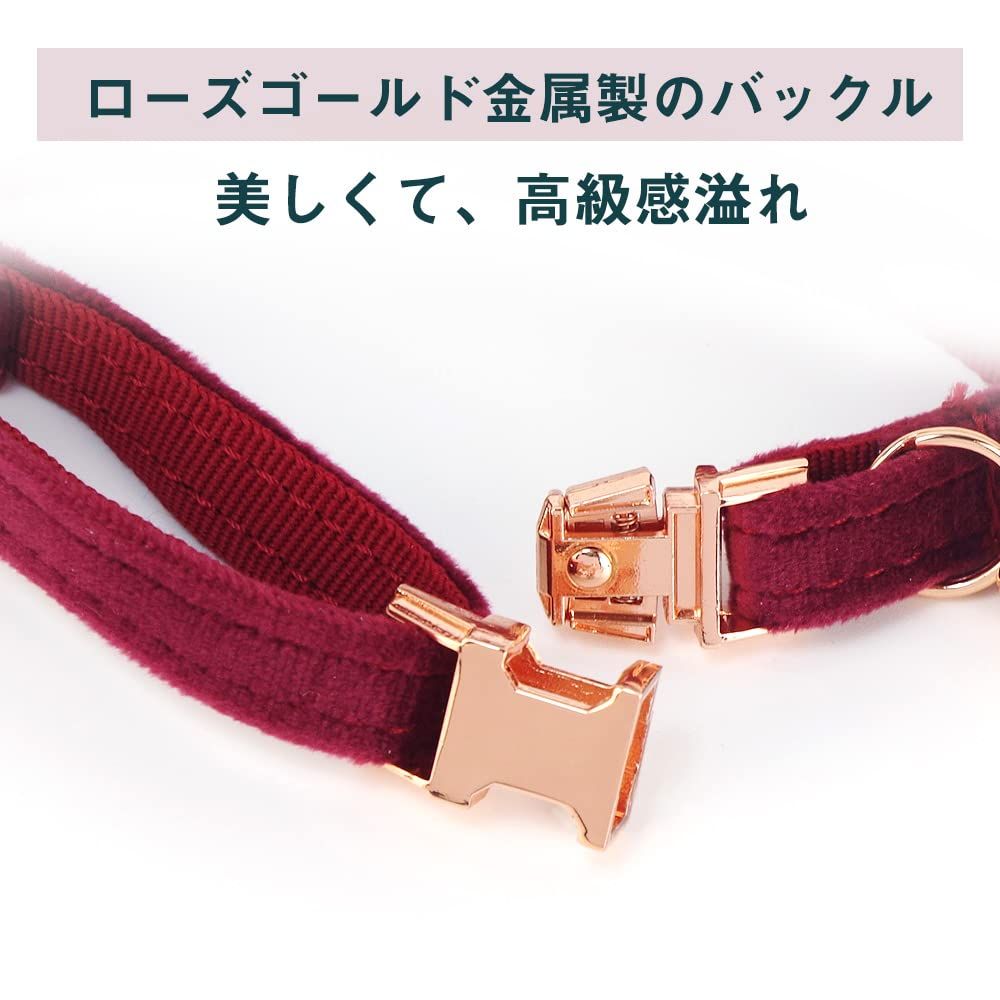 【優しい素材】この首輪は品質良いのベルベット素材で作られて、柔らかく皮に 優しいです。{タン部分は亜鉛合金を採用しており、錆びを防ぎ、美しく高級感があります。
