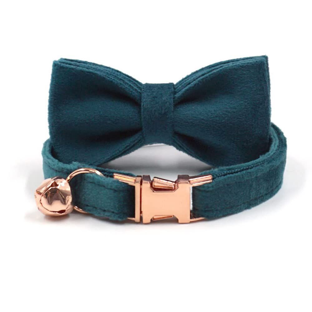 猫首輪 鈴付き かわいい おしゃれ リボン 蝶ネクタイ セット 猫用 首輪 サイズ調整でき 小型/中型/大型の猫 小型/中型の犬に適用 犬 猫用首輪 ペット用品 (ダークグリーン)