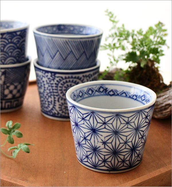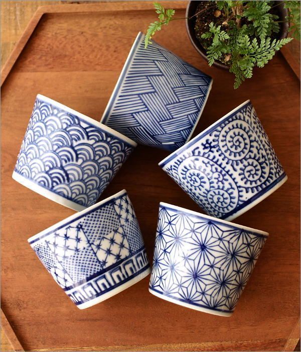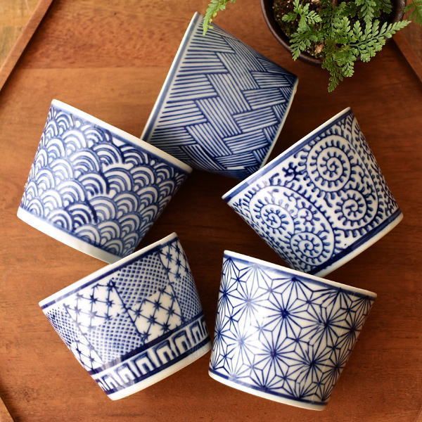伝統和柄の青花の蕎麦猪口5柄セットは