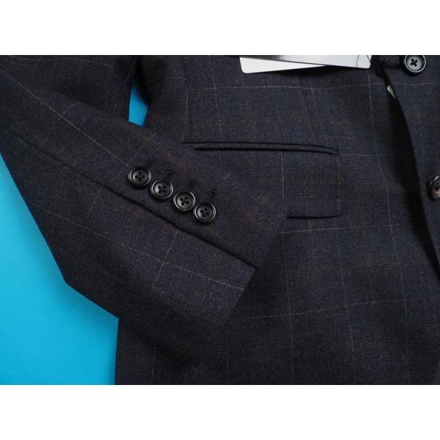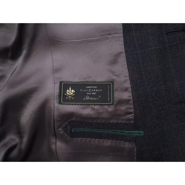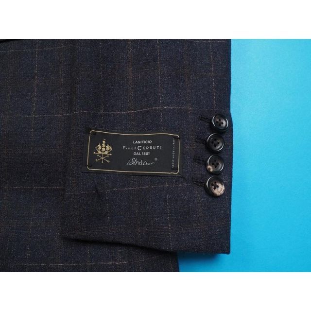水牛釦、本切羽、お台場仕立て、AMFステッチ、ラペル毛芯など、百貨店向けならではの上級仕立てで仕上げられております。ファブリックは1881年にイタリアのビエラで創業されたチェルッティ社のストレッチ入りライトフランネルウール生地を使用。