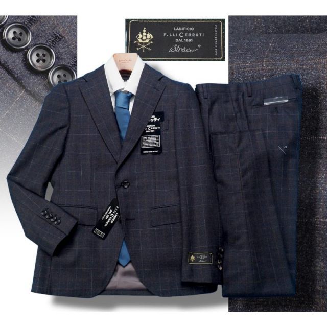 商品名:新品10.8万円 大手百貨店扱い 日本製 秋冬『CERRUTI チェルッティ 伊製生地』ウール ライトフランネル スーツYA5紺(C) 1010091