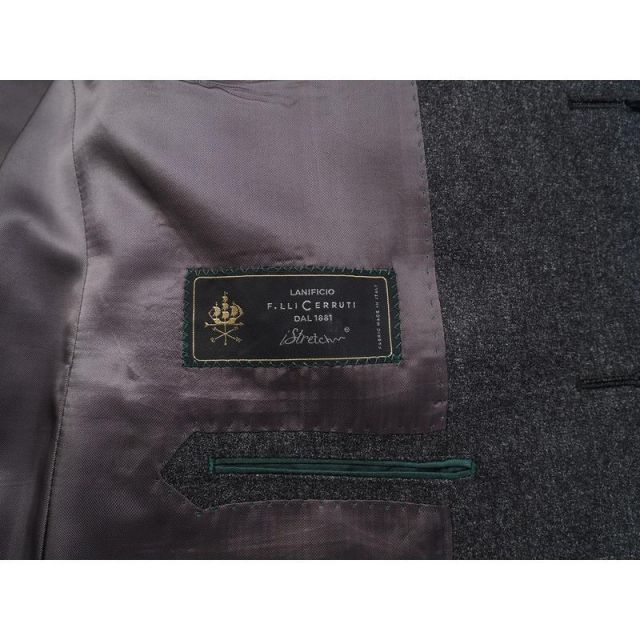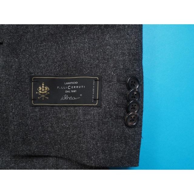 水牛釦、お台場仕立て、AMFステッチ、ラペル毛芯など、百貨店向けならではの上級仕立てで仕上げられております。ファブリックは1881年にイタリアのビエラで創業されたチェルッティ社のライトフランネル起毛ストレッチウール生地を使用。