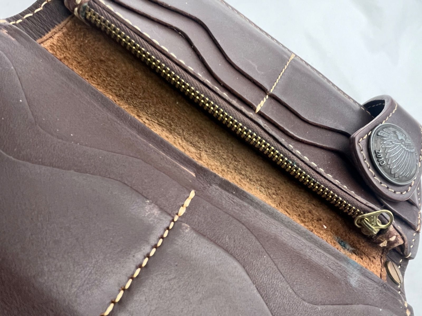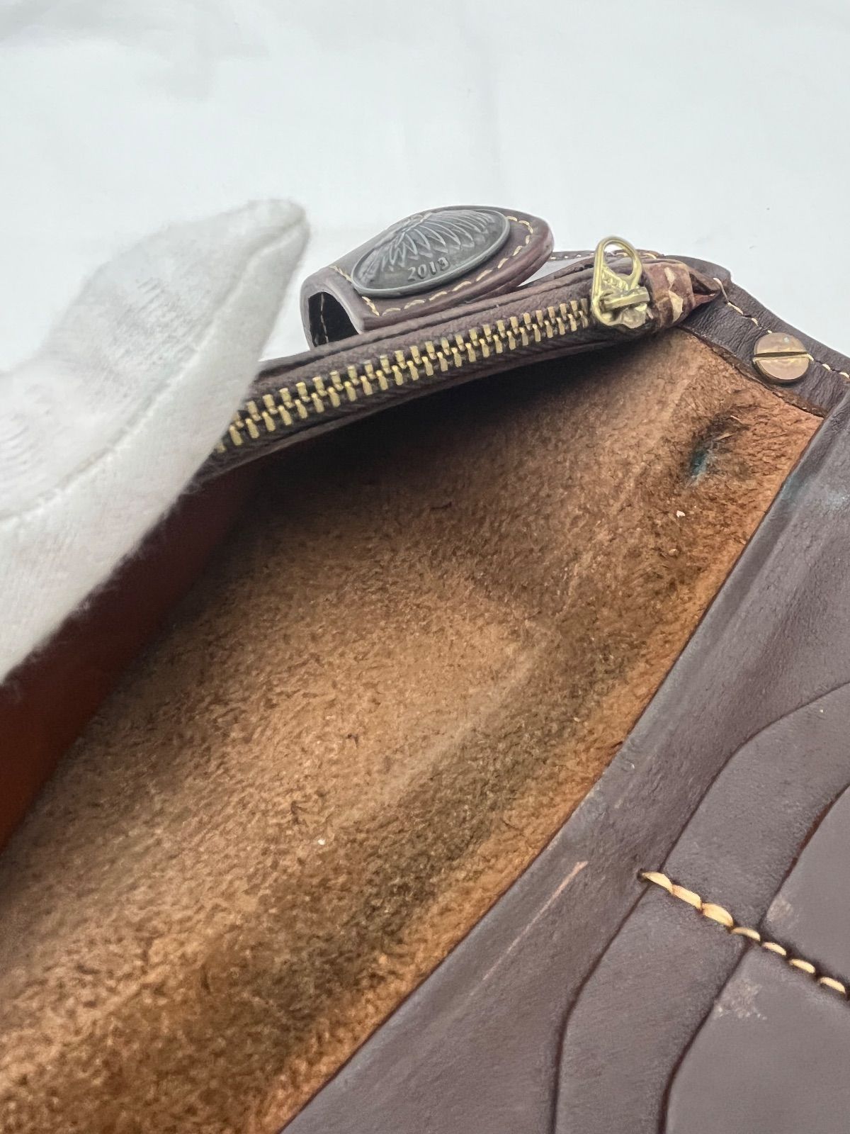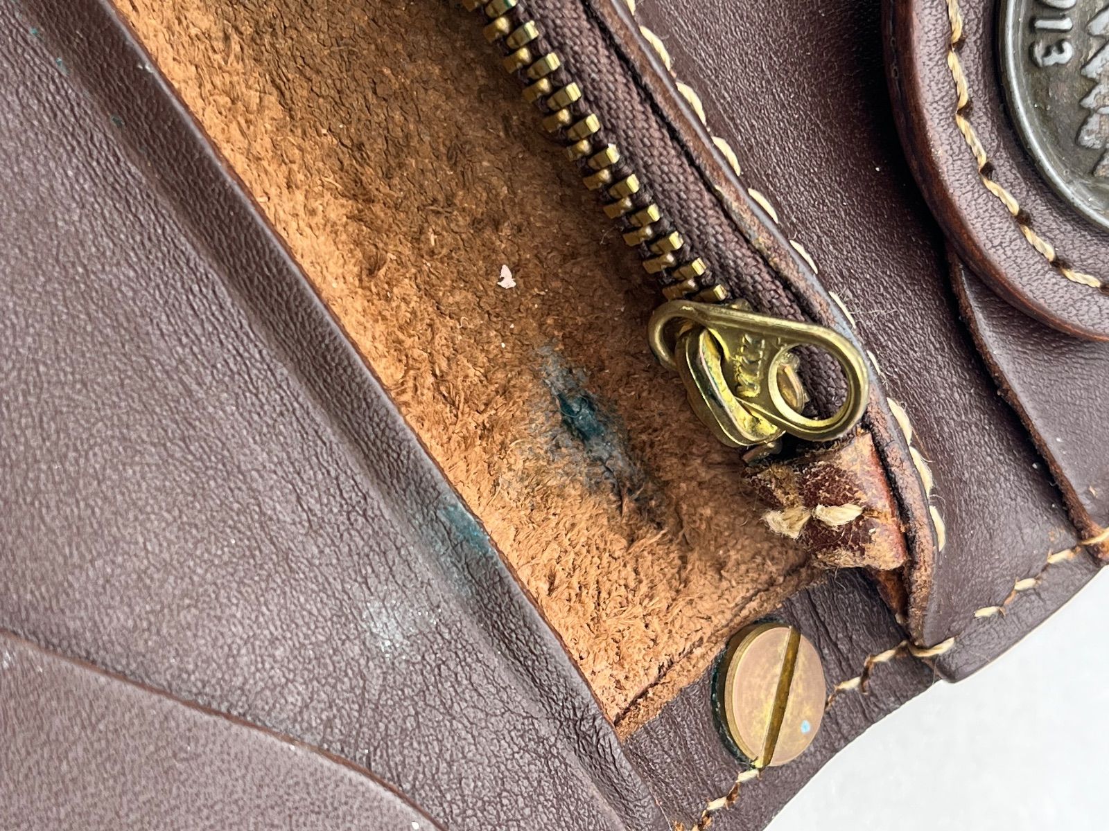 内側ファスナー部分緑に変色しています。