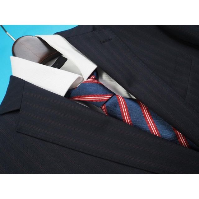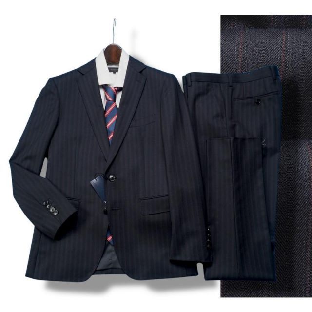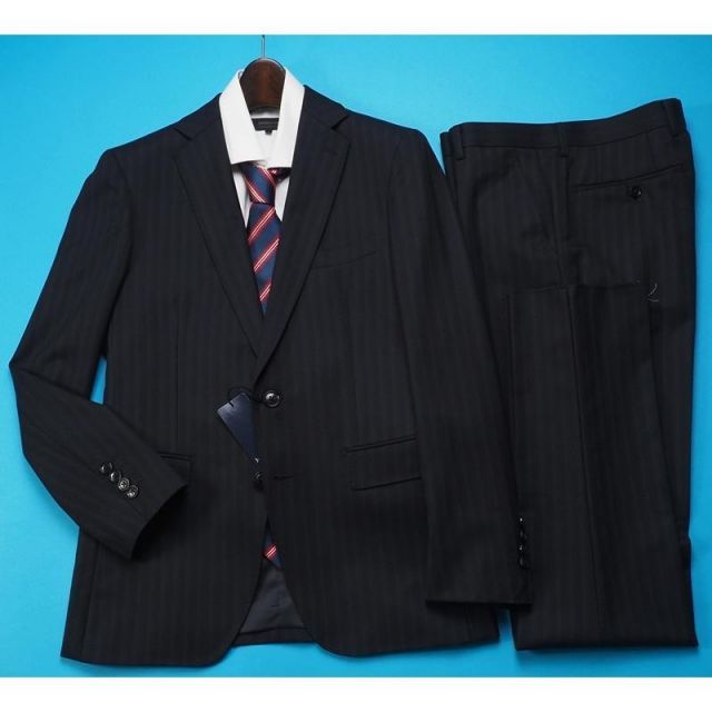 商品名:新品 大手百貨店扱い 春秋冬 総裏 艶感 ウール混ギャバジン ストライプ スーツY4濃紺(C) 1150471
