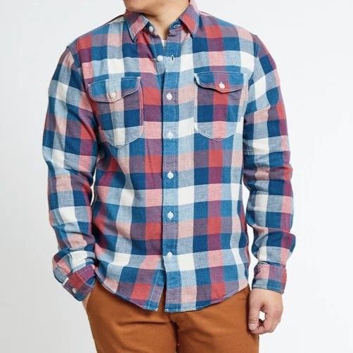 RRL ダブルアールエル LEE WORKSHIRT インディゴチェックコットンリネンワークシャツ 782928524001 M Indigo/Red Double RL 長袖 g24642