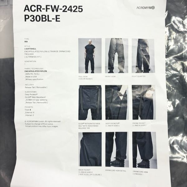 ACRONYM アクロニウム 24AW Encapsulated Nylon Ultrawide Drawcord Trouser Gen.1 サルエルパンツ P30BL-E S BLACK 定価202,400円