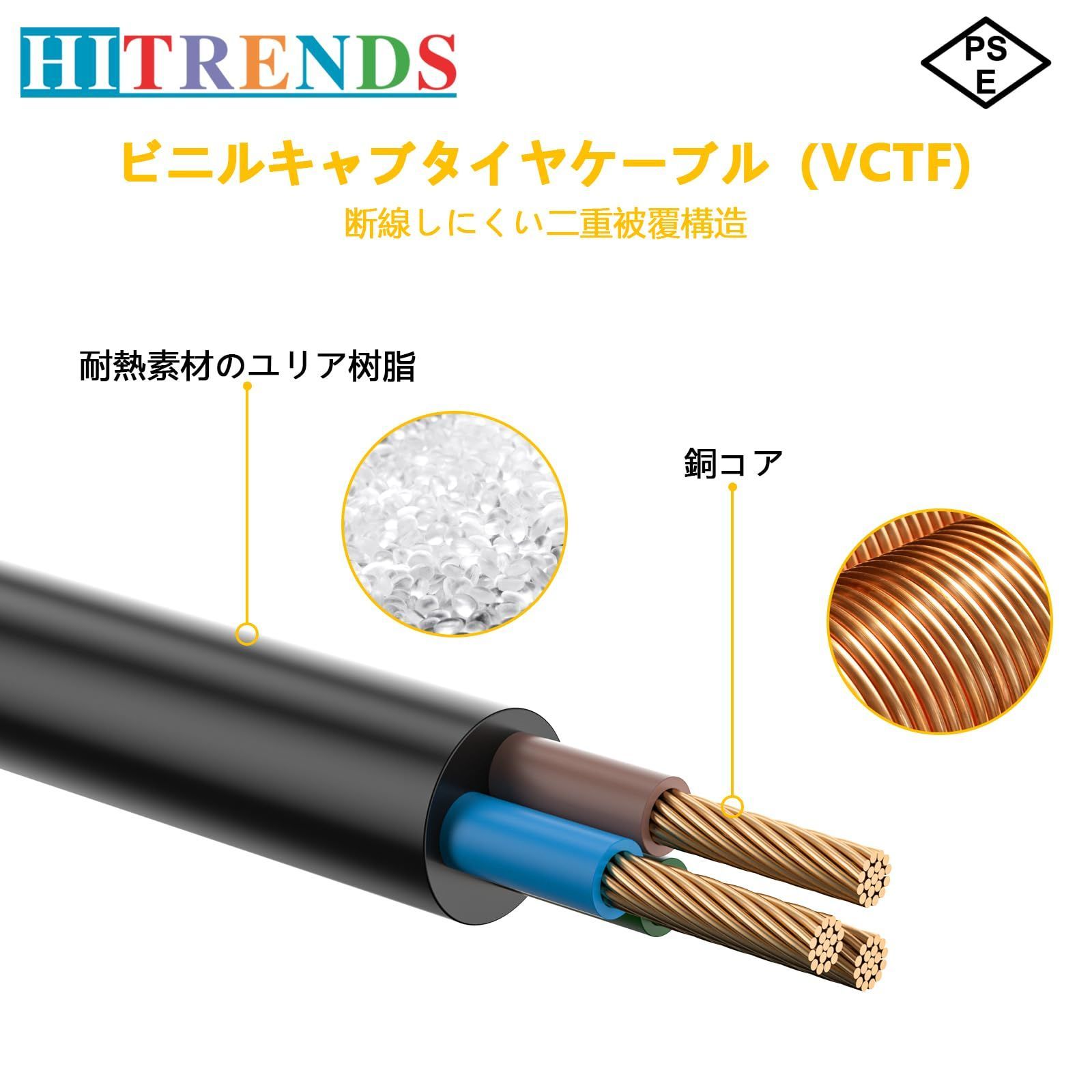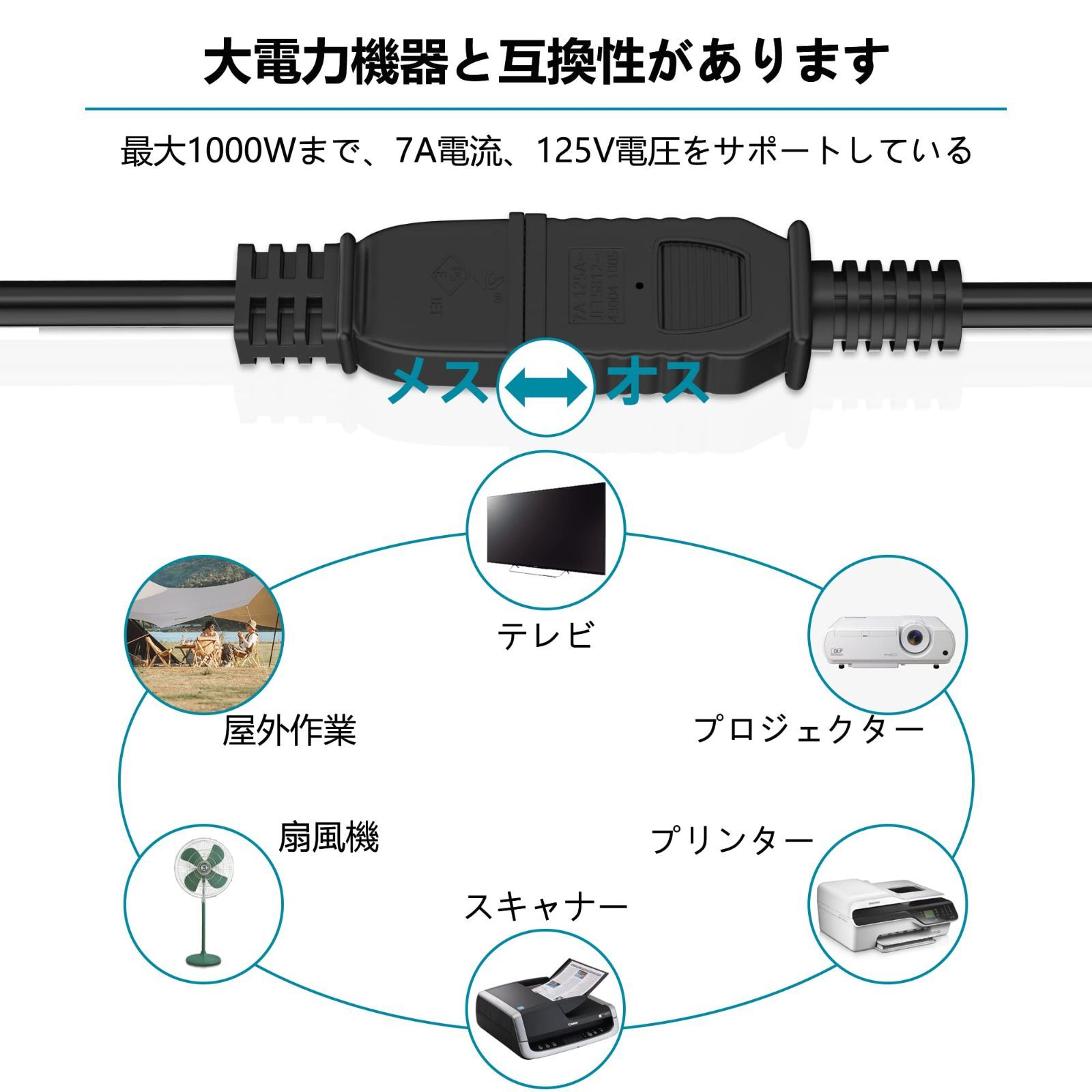 【作業、キャンプでの使用に大活躍】延長コードは、除草機、掃除機、車のアウトドア使用、キャンプの電気使用、家の装飾灯などを道具として接続することができます。園芸機械用、家電などの電源コードが延長出来る2P、1個口の延長コードです。