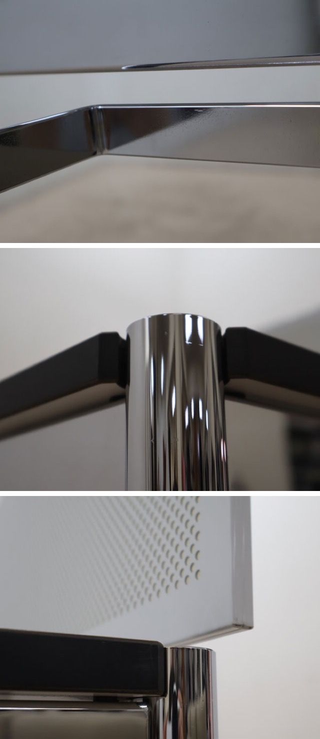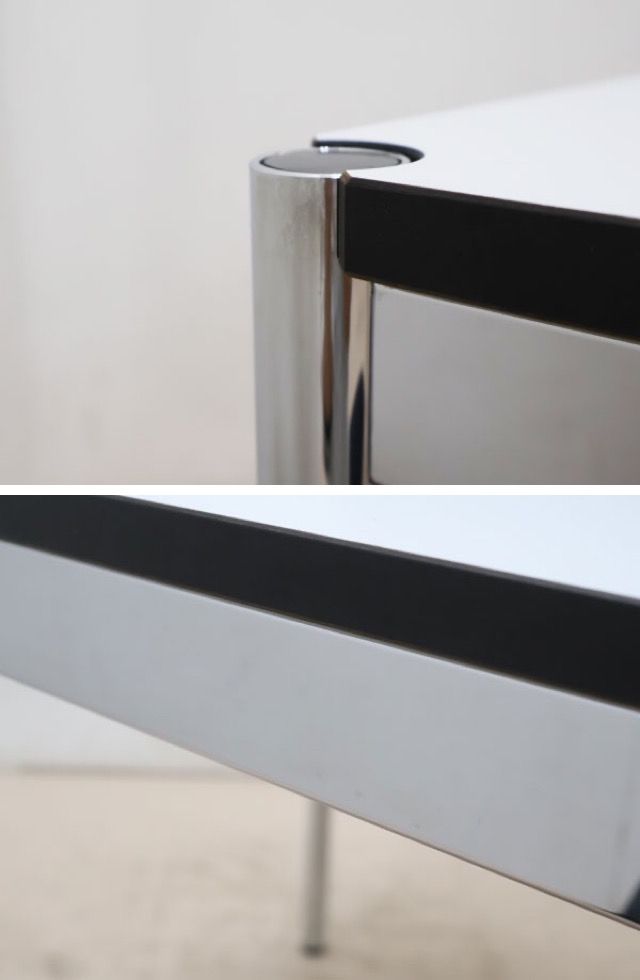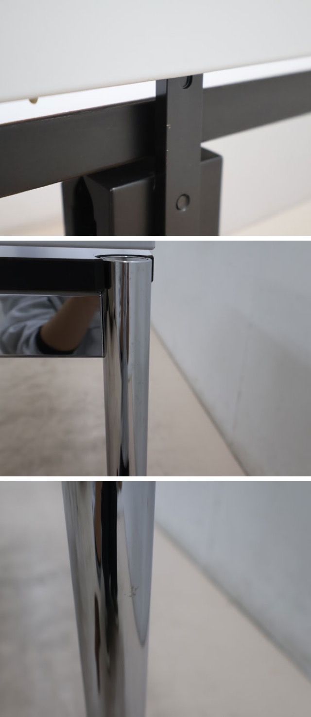 クロームメッキのフレームと4本のスティールチューブの脚が特長のテーブル。