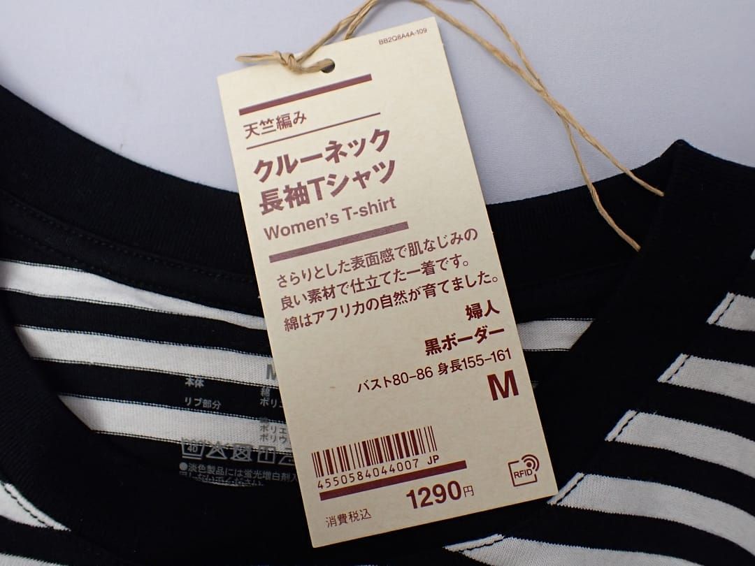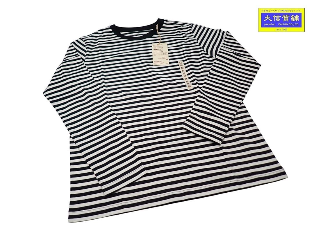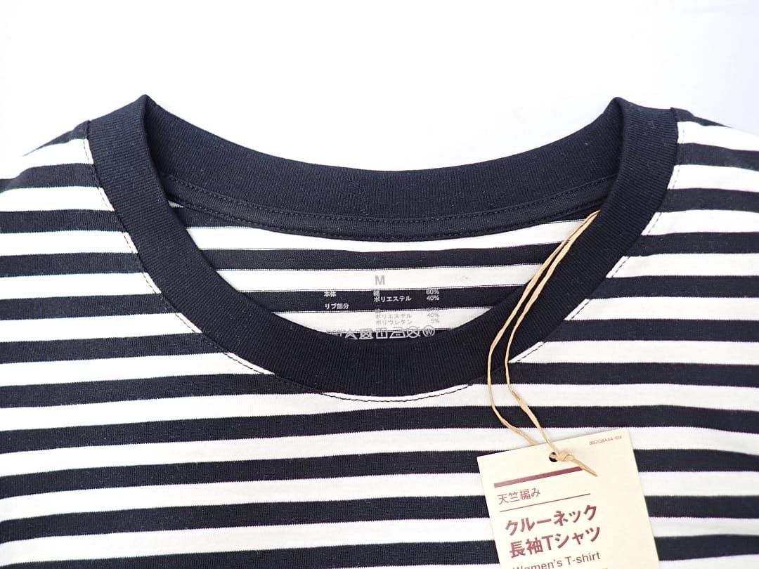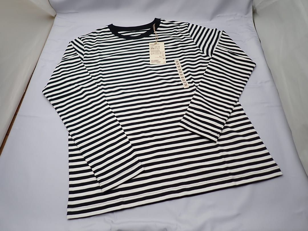 ◆商品名:MUJI 無印良品 クルーネック 長袖Tシャツ 天竺編み 黒ボーダー レディースM 未使用品 【送料無料】