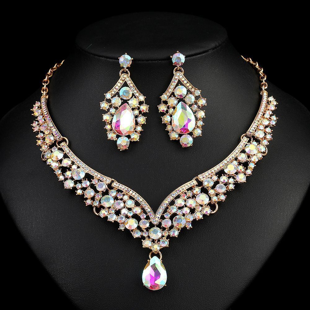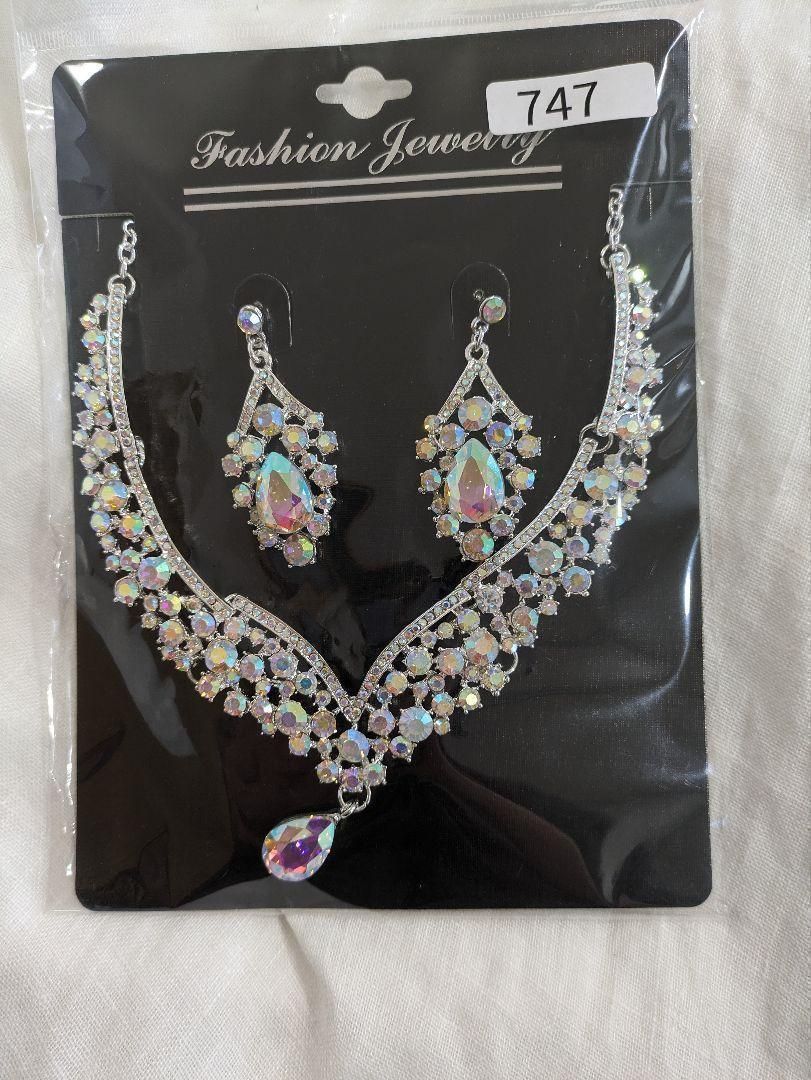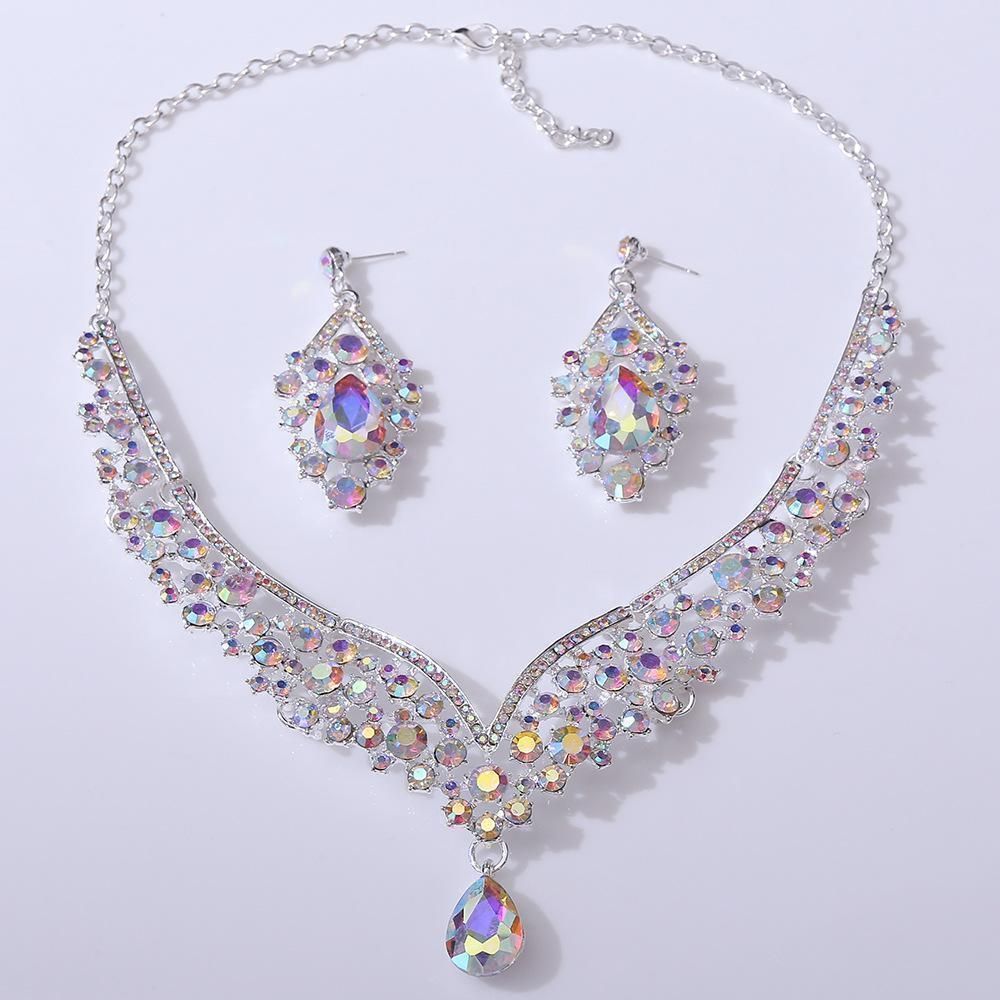 ベリーダンス アクセサリー ネックレス ピアス 社交ダンス 衣装 ビジュー 747 シルバー オーロラ ラインストーン 結婚式 ブライダル ウェディング
