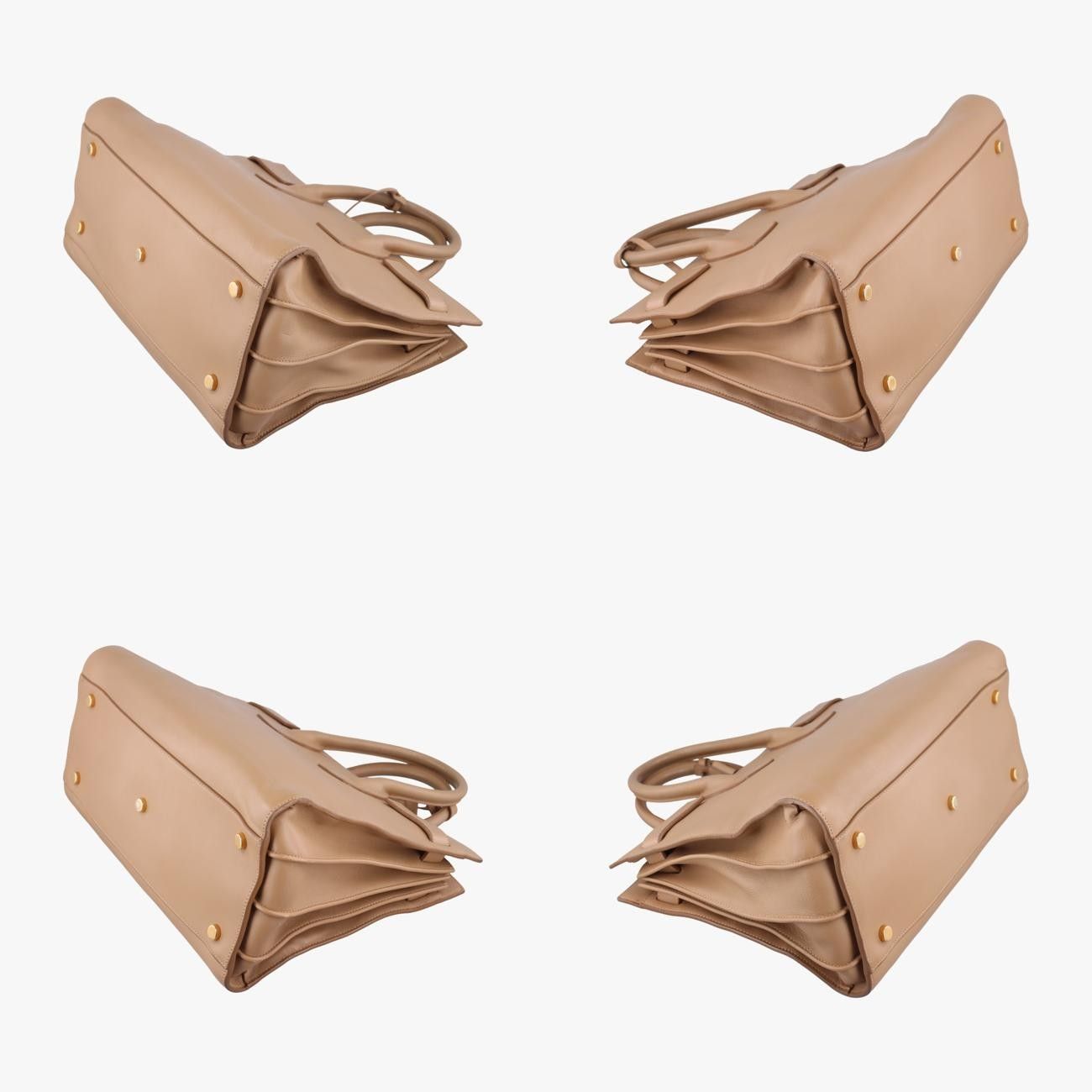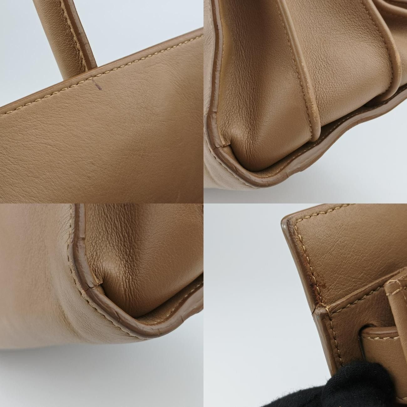 全体の中度使用跡、被覆が軽度に変形する、内側の軽度な汚れ、傷、側面油辺の軽度亀裂、金属の軽度摩耗、手提げ油辺の軽度亀裂、肩ベルトの軽度変形;