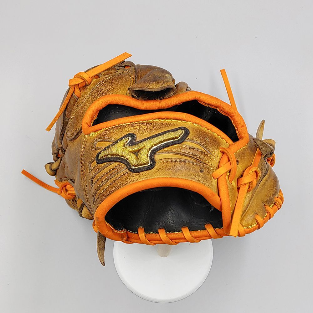紐とヘリ革をすべて新品時と同色で交換済みです。新品時の色で交換していますので学生野球での使用も可能です。