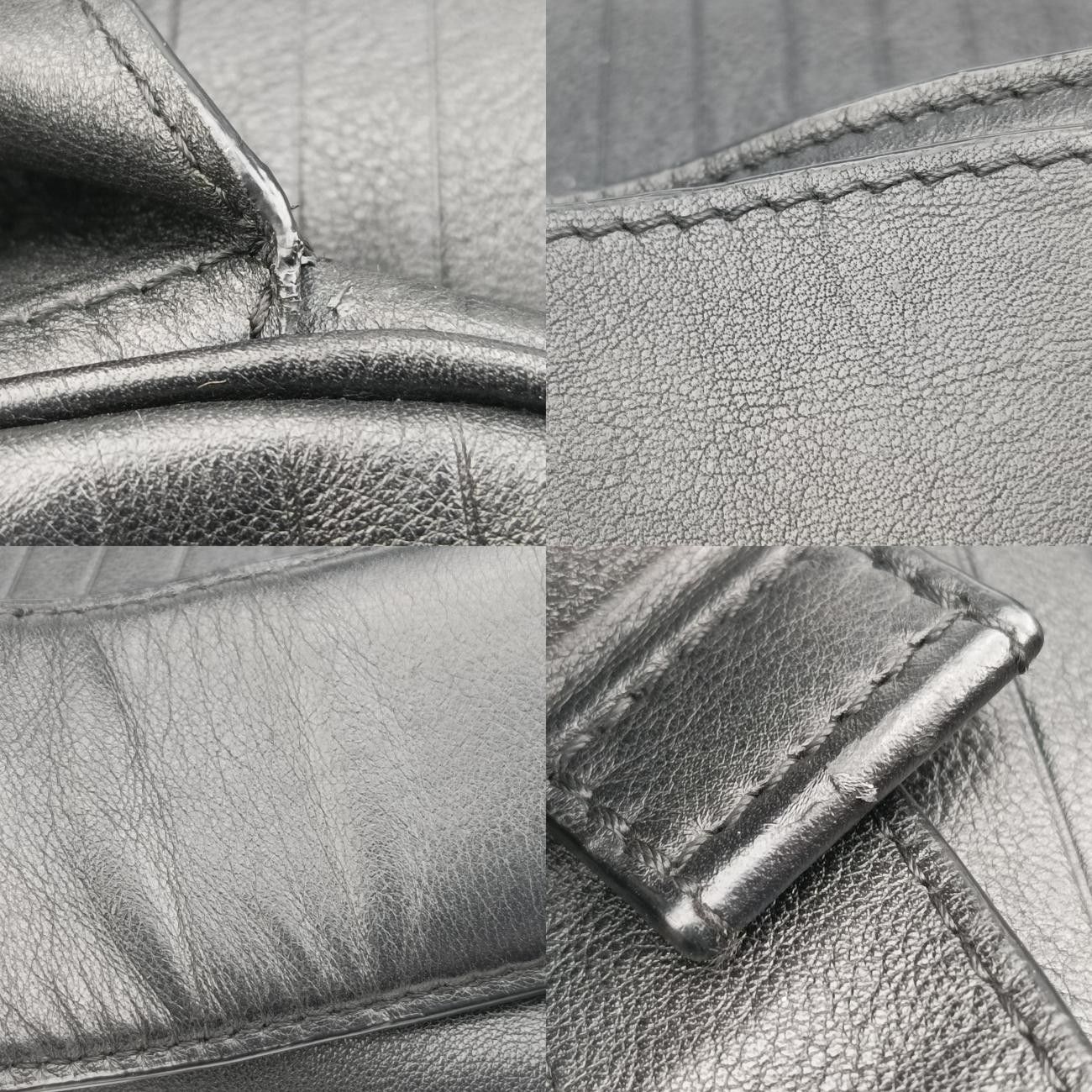 全体の軽度使用跡、被覆体の軽度スクラッチ、補色跡、内部の軽度な汚れ、摩耗、金属の軽度摩耗、肩ベルトの油縁修復跡、片側ファスナーの皮が欠けている;