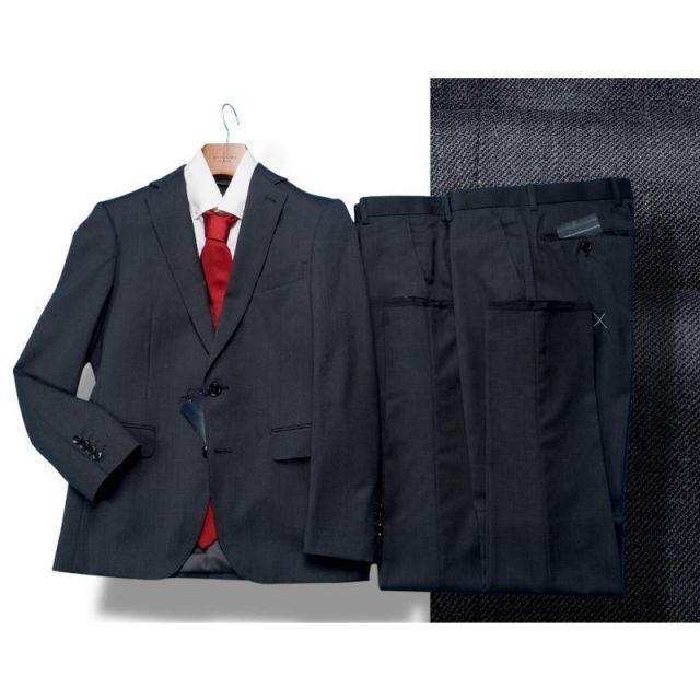 ヘビーなビジネスユースに好評なツーパンツ仕様のスーツです。