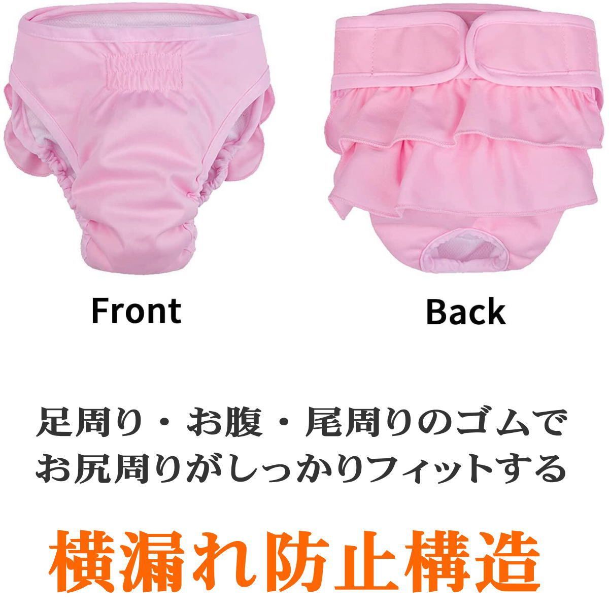 女の子に適したこのパンツは、発情期や尿もれ対策に最適。かわいらしい2段フリルが特徴で、見た目にも楽しいデザインです。