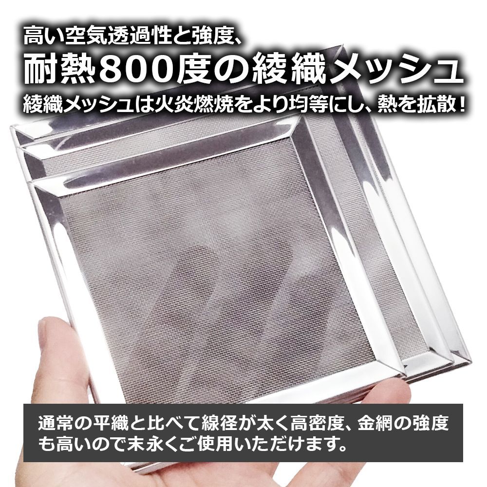 材質:特殊耐熱鋼FCHW2(メッシュ)、ステンレス鋼(枠)