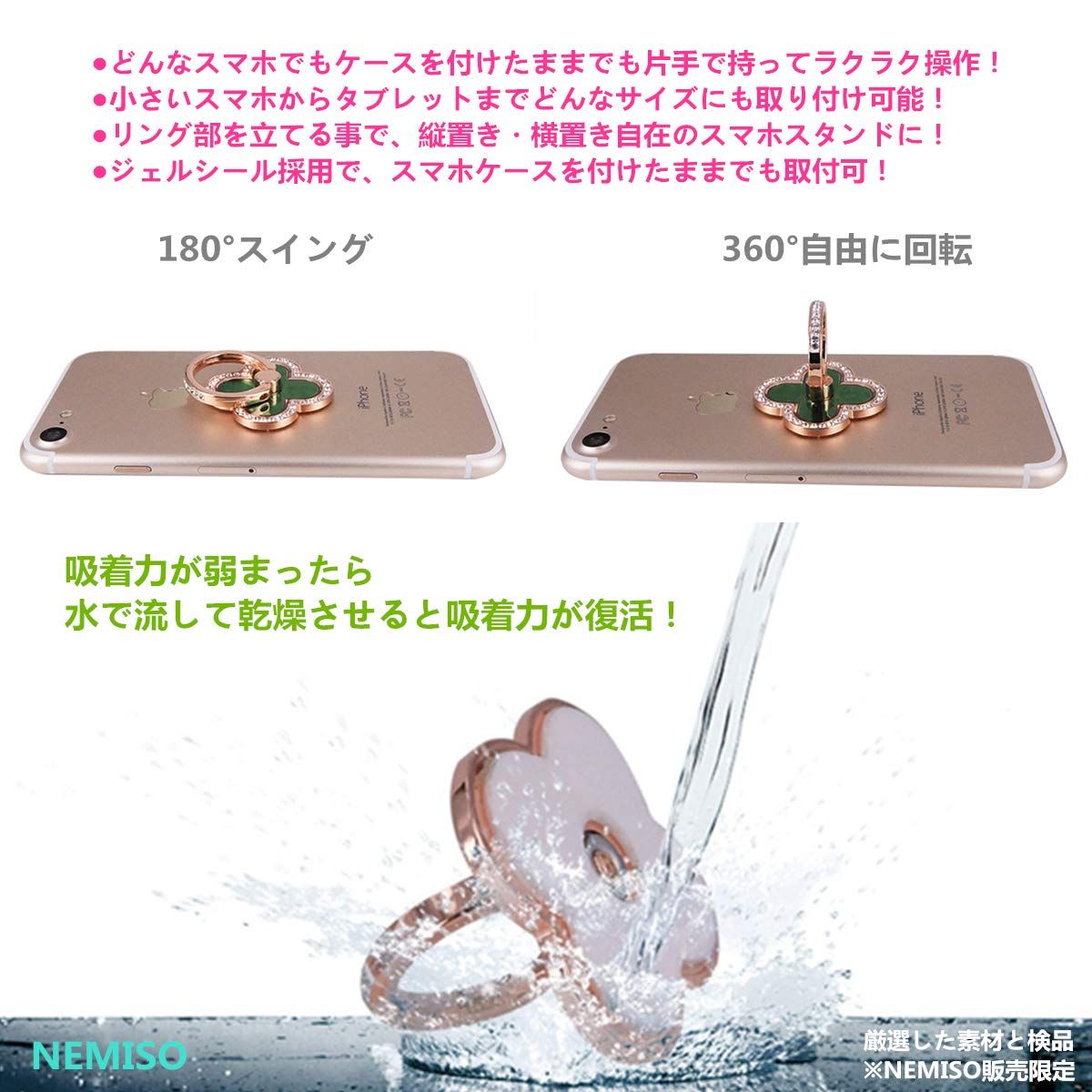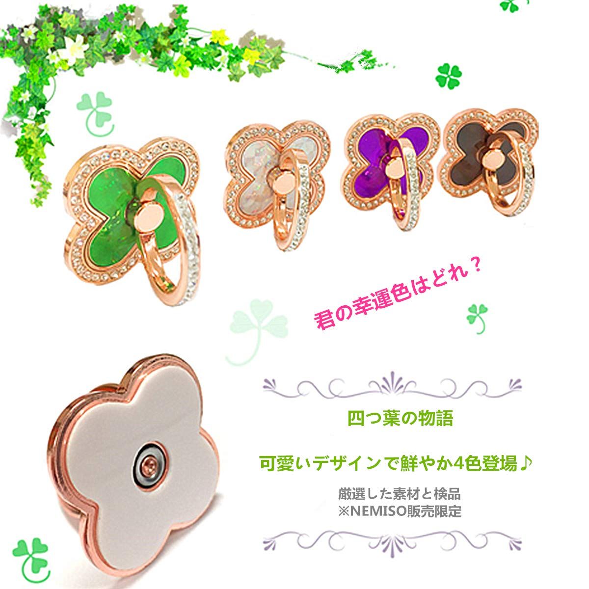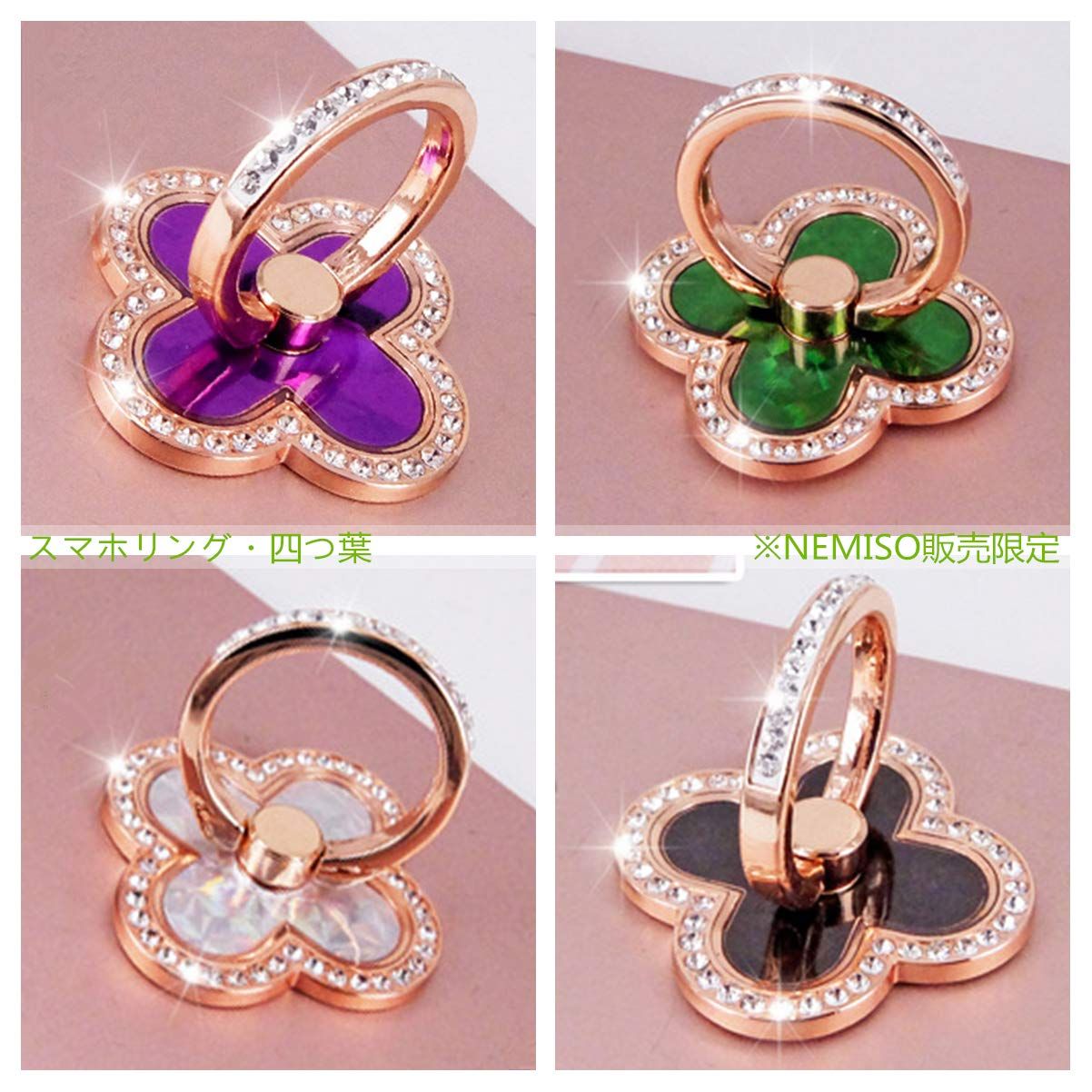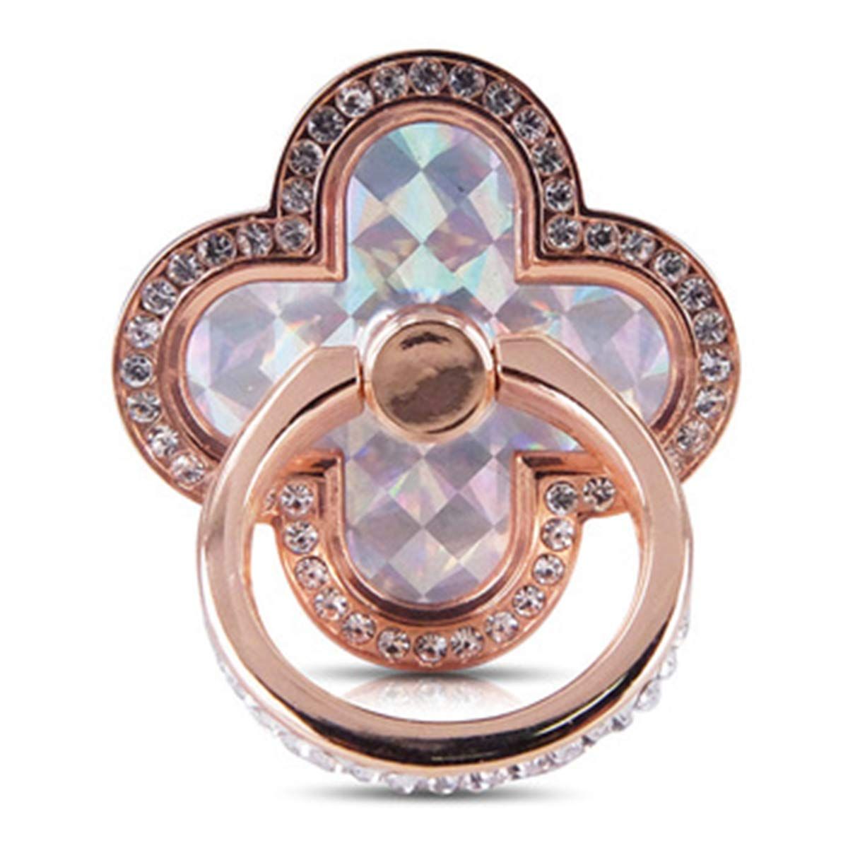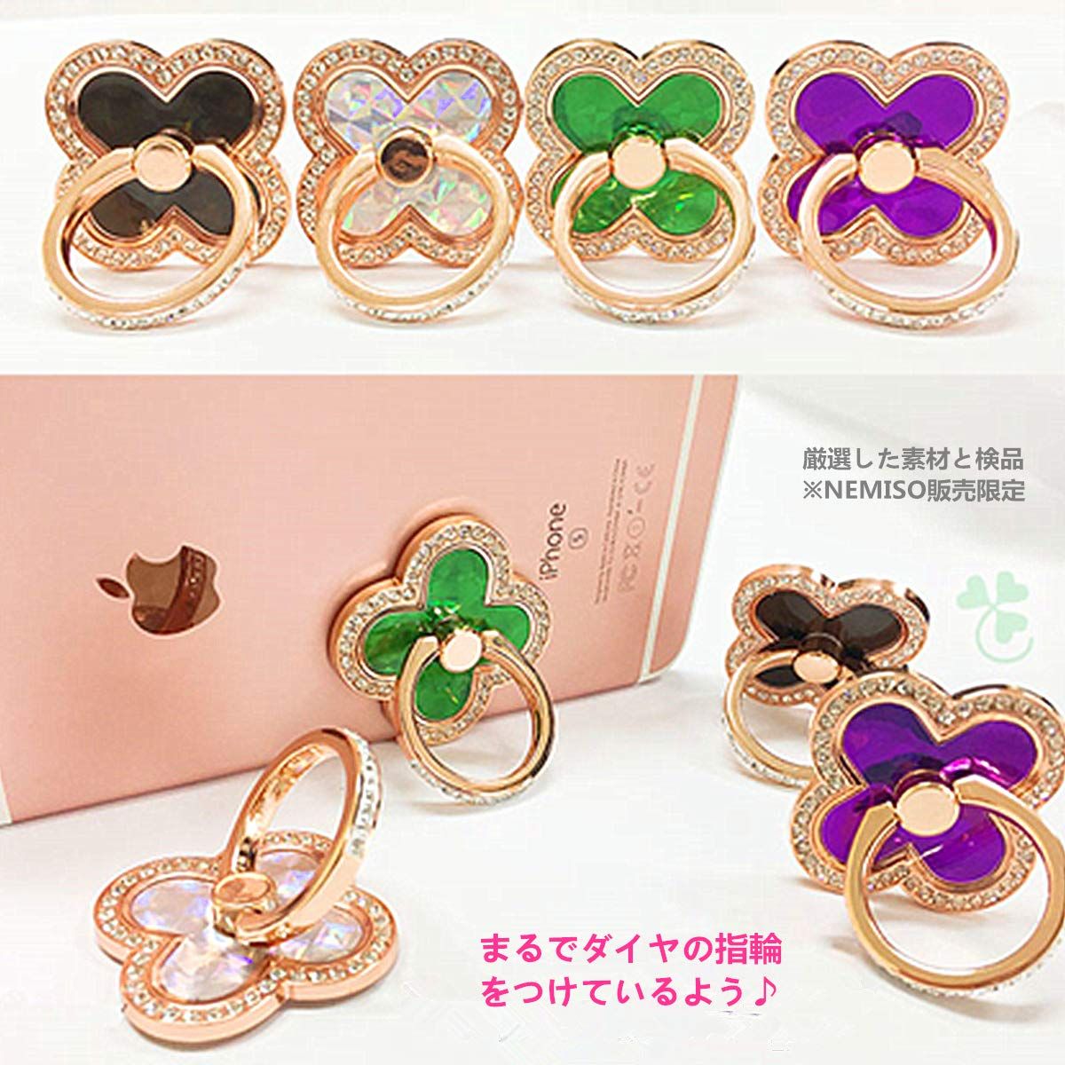 スマホリング バンカーリング 四つ葉 四葉 キラキラ ダイヤモンド付き ホールドリング スマホスタンド スマートフォン タブレット ホルダー 薄型 指輪 リング 携帯アクセサリー スタンド機能 落下防止 車載ホルダー 360回転 iPhone/Android各種他対応 (クリスタル)