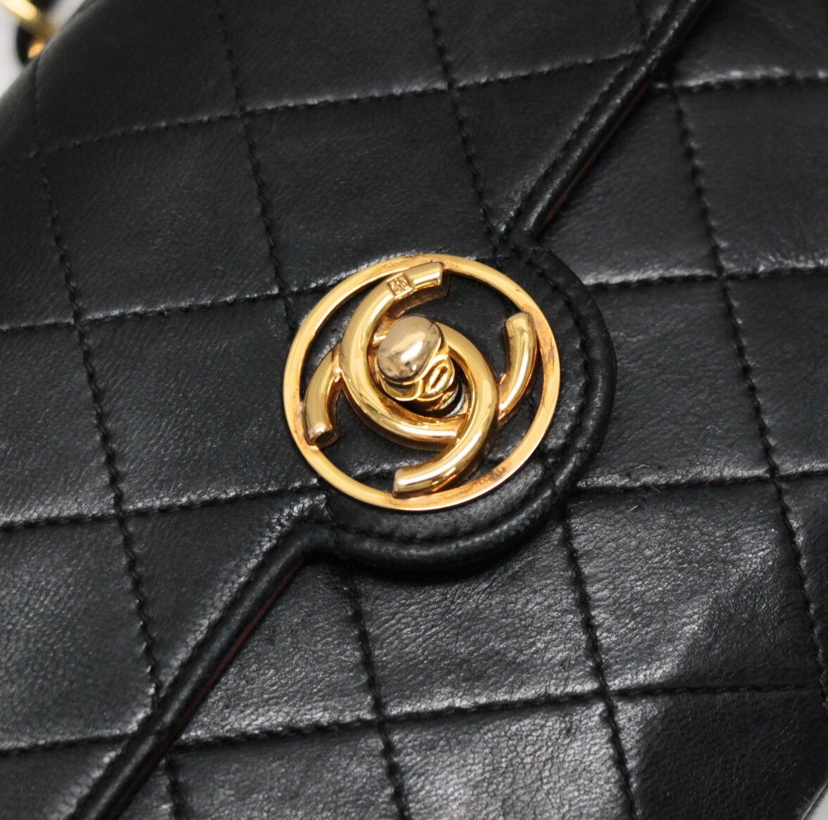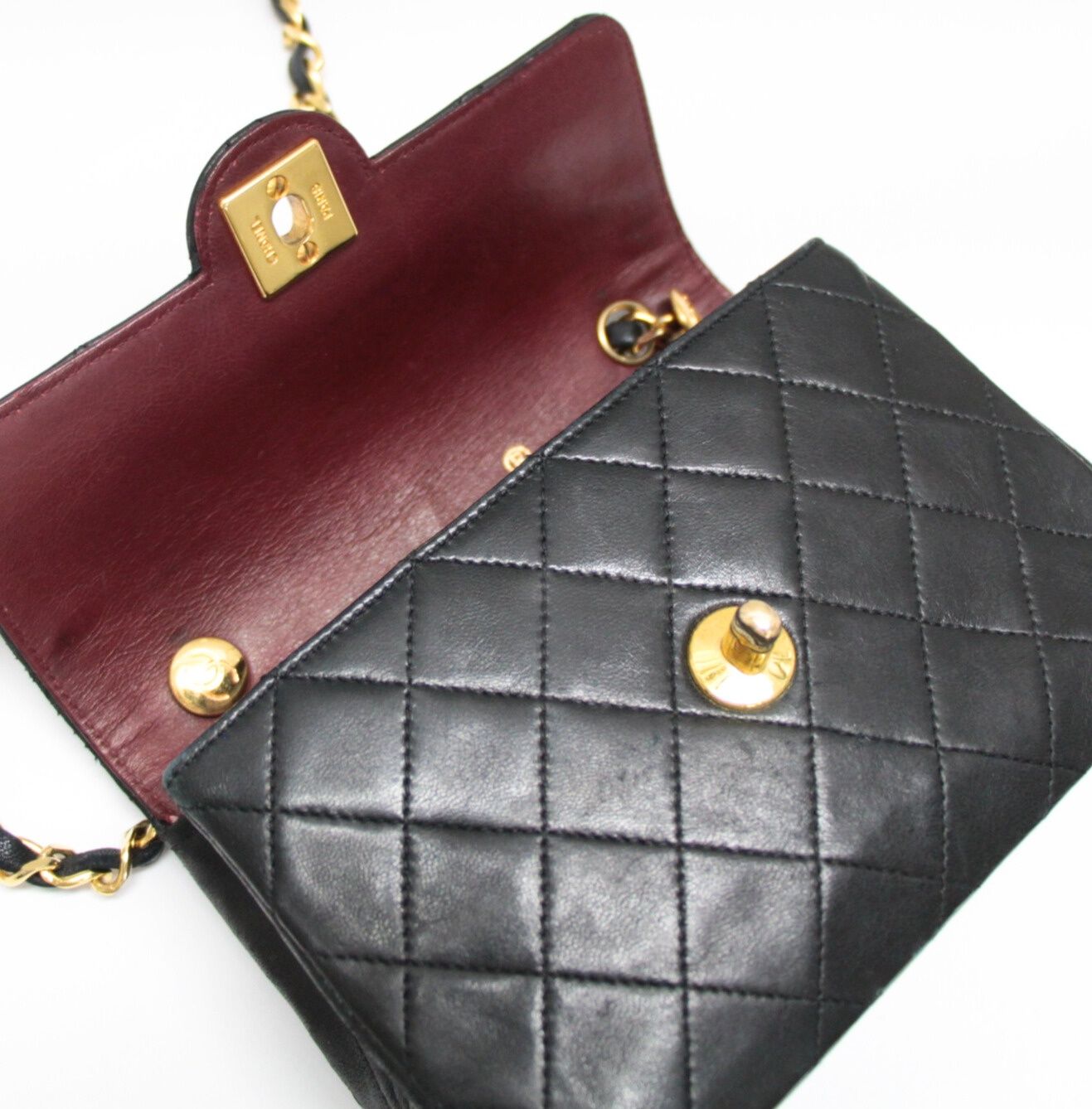 シャネル CHANEL ヴィンテージ ミニマトラッセ サークルココ チェーンショルダーバッグ ラム 黒 1番台【72901】