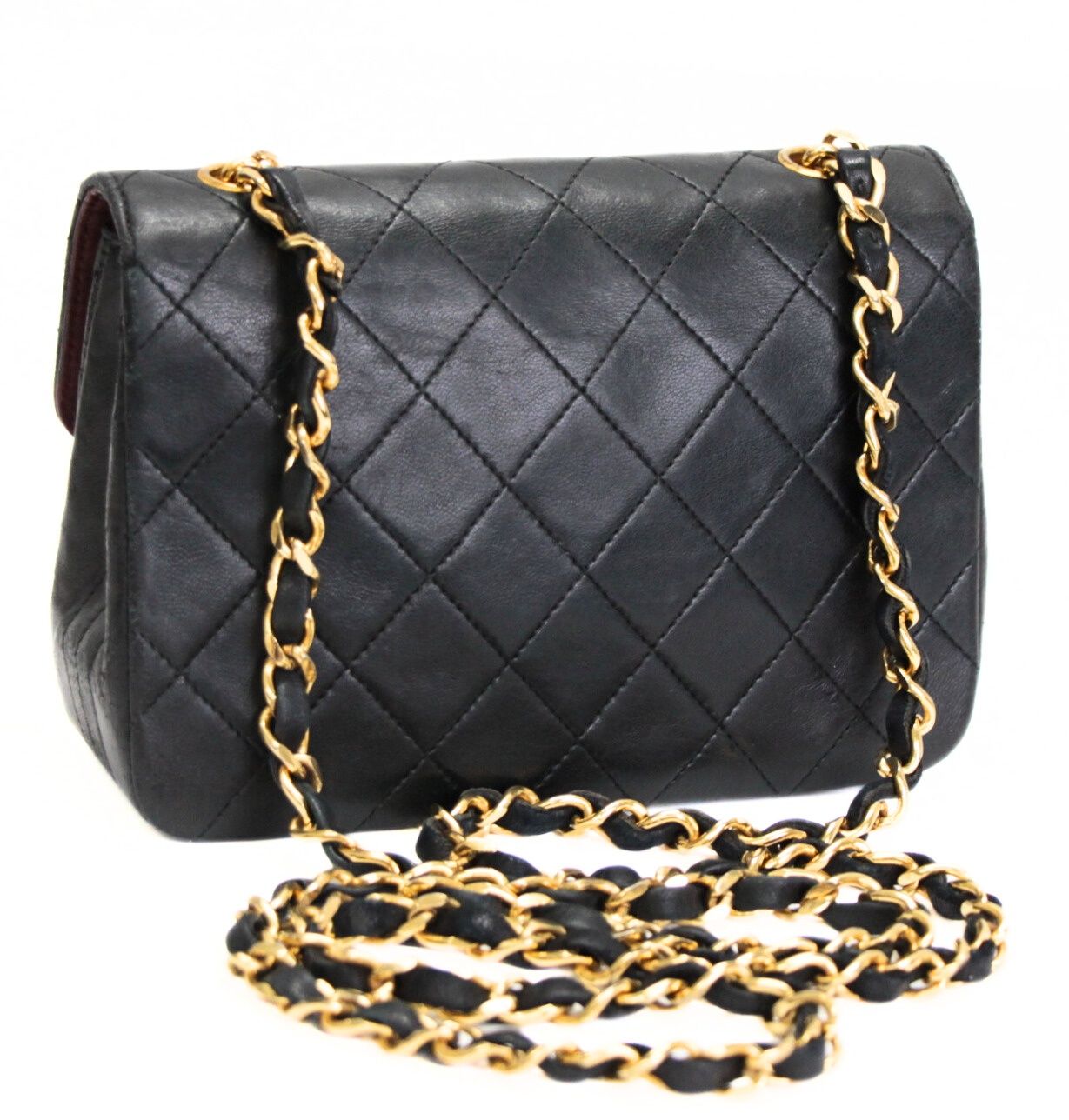 シャネル CHANEL ヴィンテージ ミニマトラッセ サークルココ チェーンショルダーバッグ ラム 黒 1番台 【72901】
