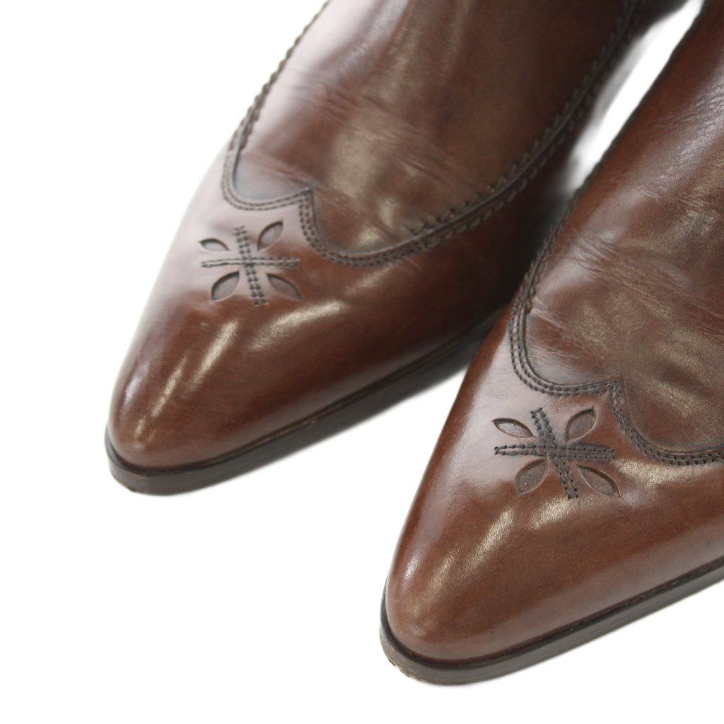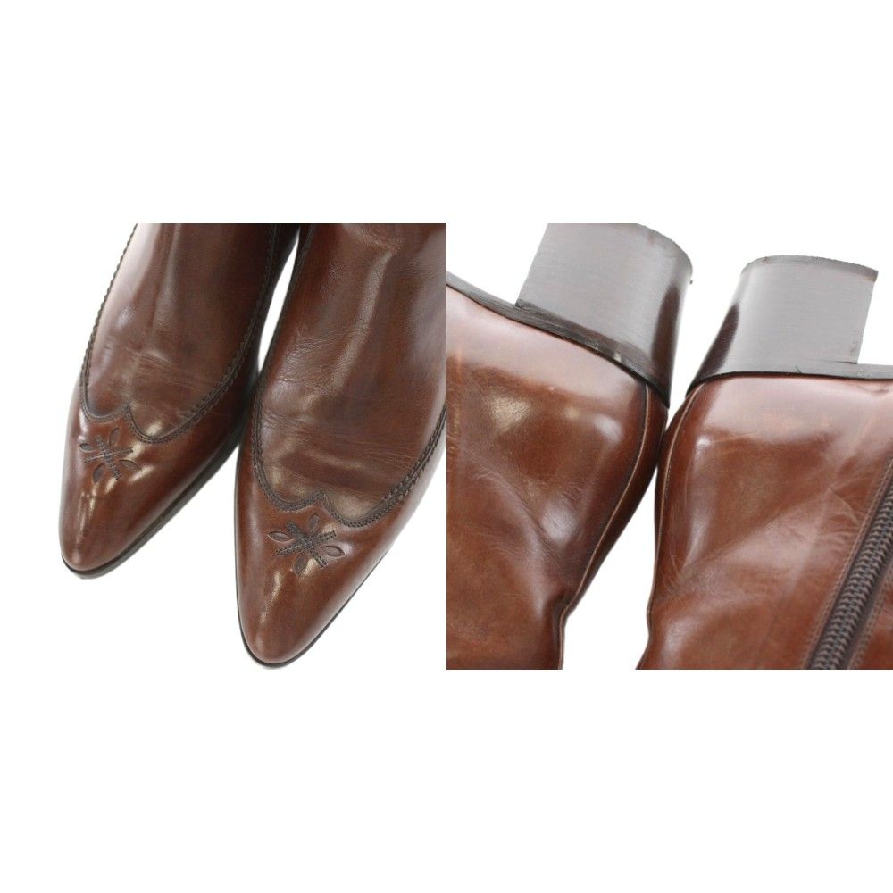 【商品名】アルカ alka ショートブーツ チャンキーヒール ポインテッドトゥ レザー 36 茶 ブラウン /AN5 ■BM