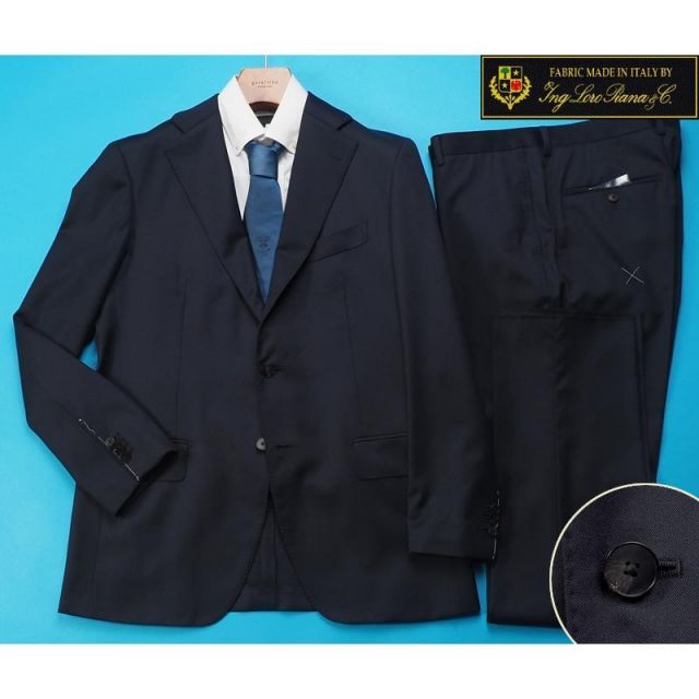 商品名:新品訳 大手スーツ専門店扱い 10マンス『ロロピアーナ 伊製生地』Super130Sウール100% ソリッド無地 スーツYA5紺(M) 0143341