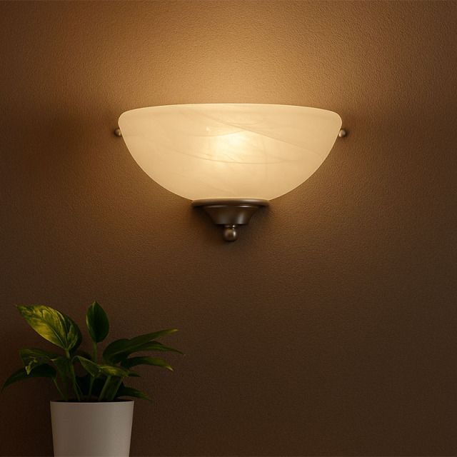 DESIGN HOUSE社の「ミルブリッジ NEW SN1灯ブラケット・ウォールライト(スコンス)」は、モダンなデザインが際立つウォールライトです。シンプルでおしゃれなデザインが洗練された雰囲気を演出し、高品質なサテンニッケル仕上げが室内を美しく引き立てます。耐久性のあるスチール製で錆びにくく、メンテナンスの手間もかかりません。繊細な柄模様が入ったアラバスタのガラスシェードが、インテリアに素晴らしい照明効果をもたらします。