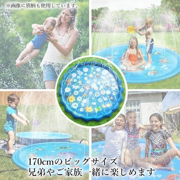 噴水マット アニマル柄 170cm 水遊び プール 大きい ビニールプール 噴水プール 家庭用 親子遊び 子供用 庭 ((S