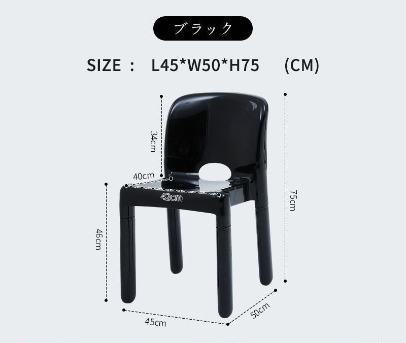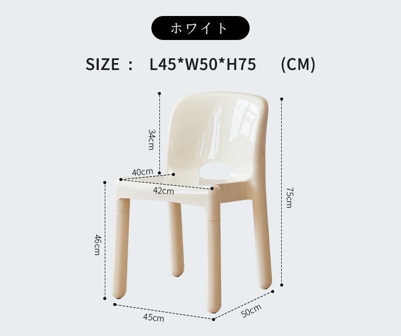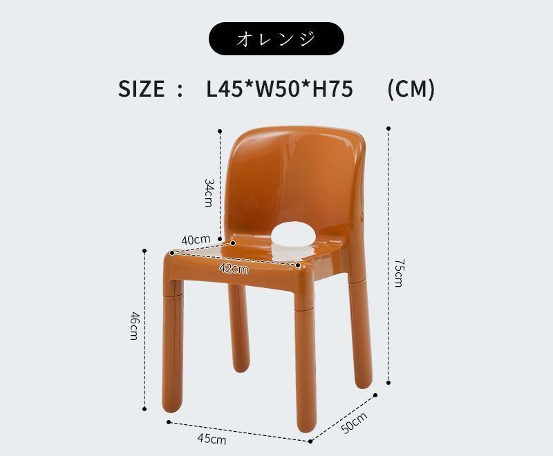 すべての色と在庫に在庫があります北欧デザインのおしゃれなインテリアチェアは、リビングやダイニング、さらには喫茶店やレストランなど、様々な空間にマッチするアイテムです。このチェアは、安心して使用できるポリプロピレン製で、耐荷重は200KGと非常に頑丈。曲線を描く背もたれは、長時間座っていても快適なサポートを提供します。座面は広く設計されており、一体成型のプラスチック製で程よいしなりが感じられるため、座り心地も抜群です。