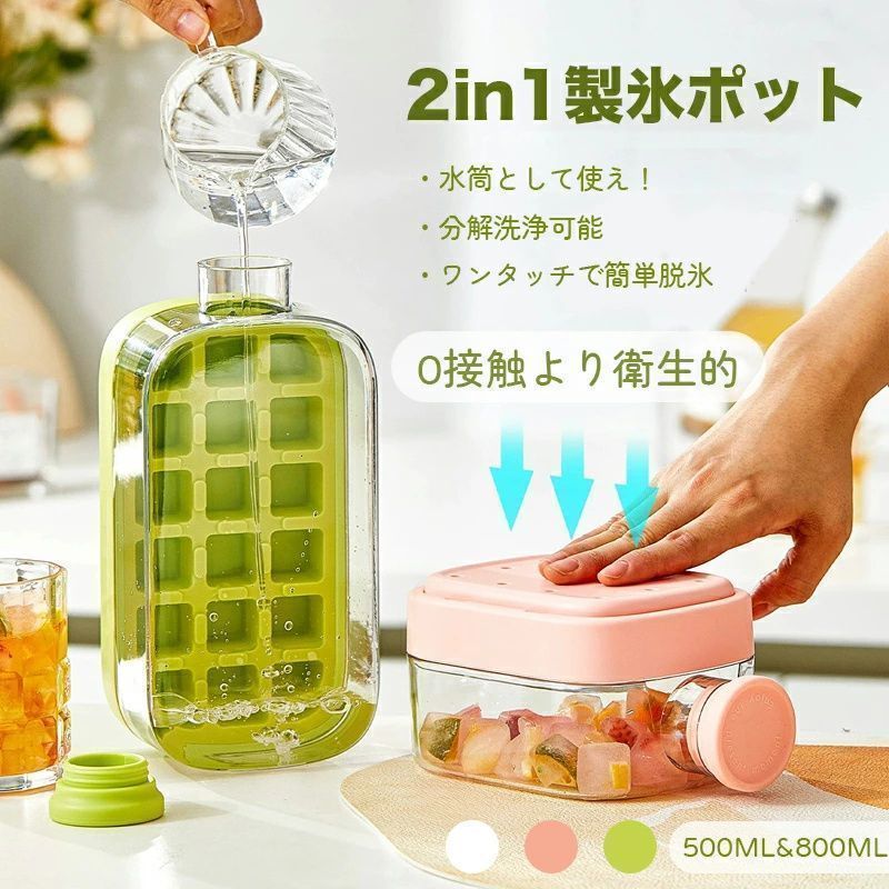 ????製氷皿 製氷ケース 製氷器 2in1製氷ポット 500ml製氷ポット 製氷皿 水筒型製氷皿 アイスパック 0接触?360°完全漏れ防止設計 ウィスキー カ