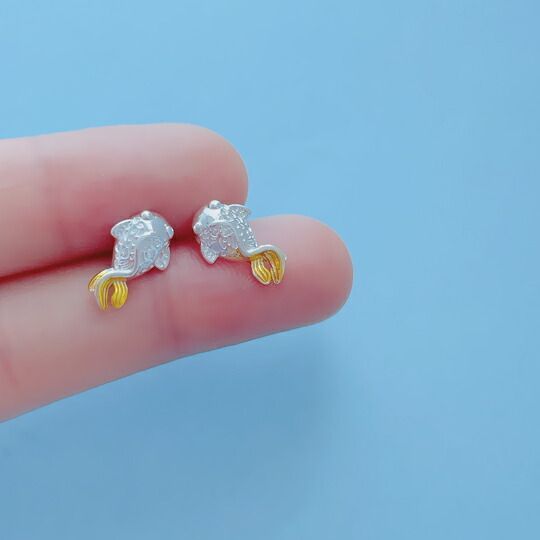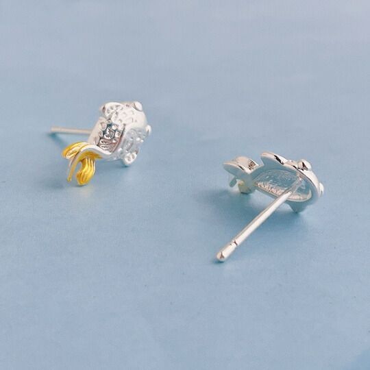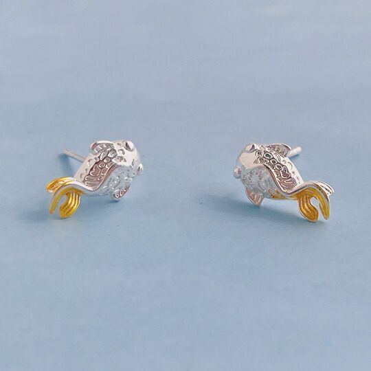 縁起の良い「金魚」をモチーフにした、S925シルバー製の和モダンピアスです。