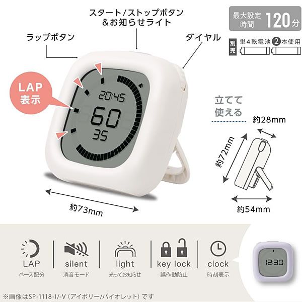 ◇タイマー設定時間:カウントダウン時=最大99分59秒~最小1秒、カウントアップ時=最大99分59秒