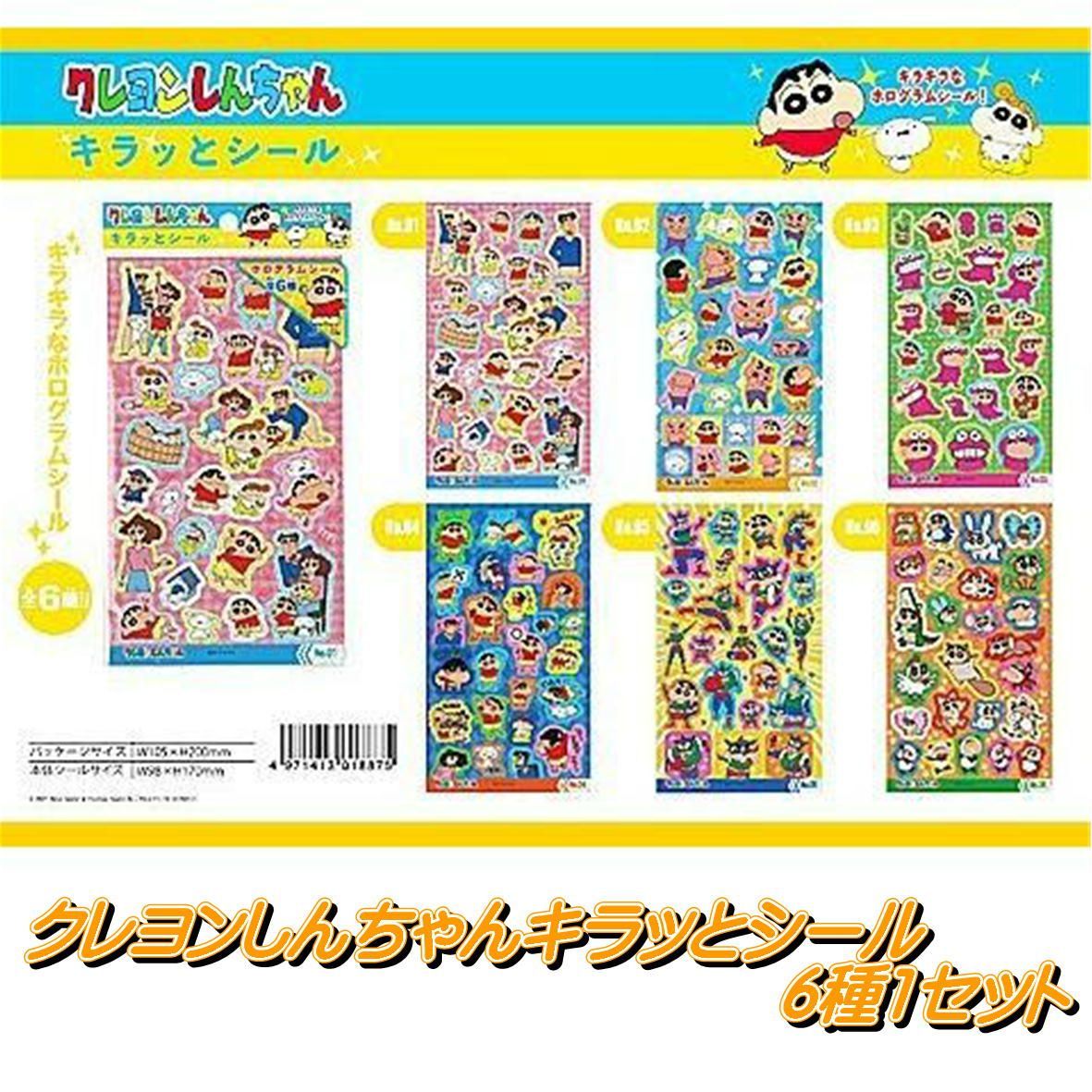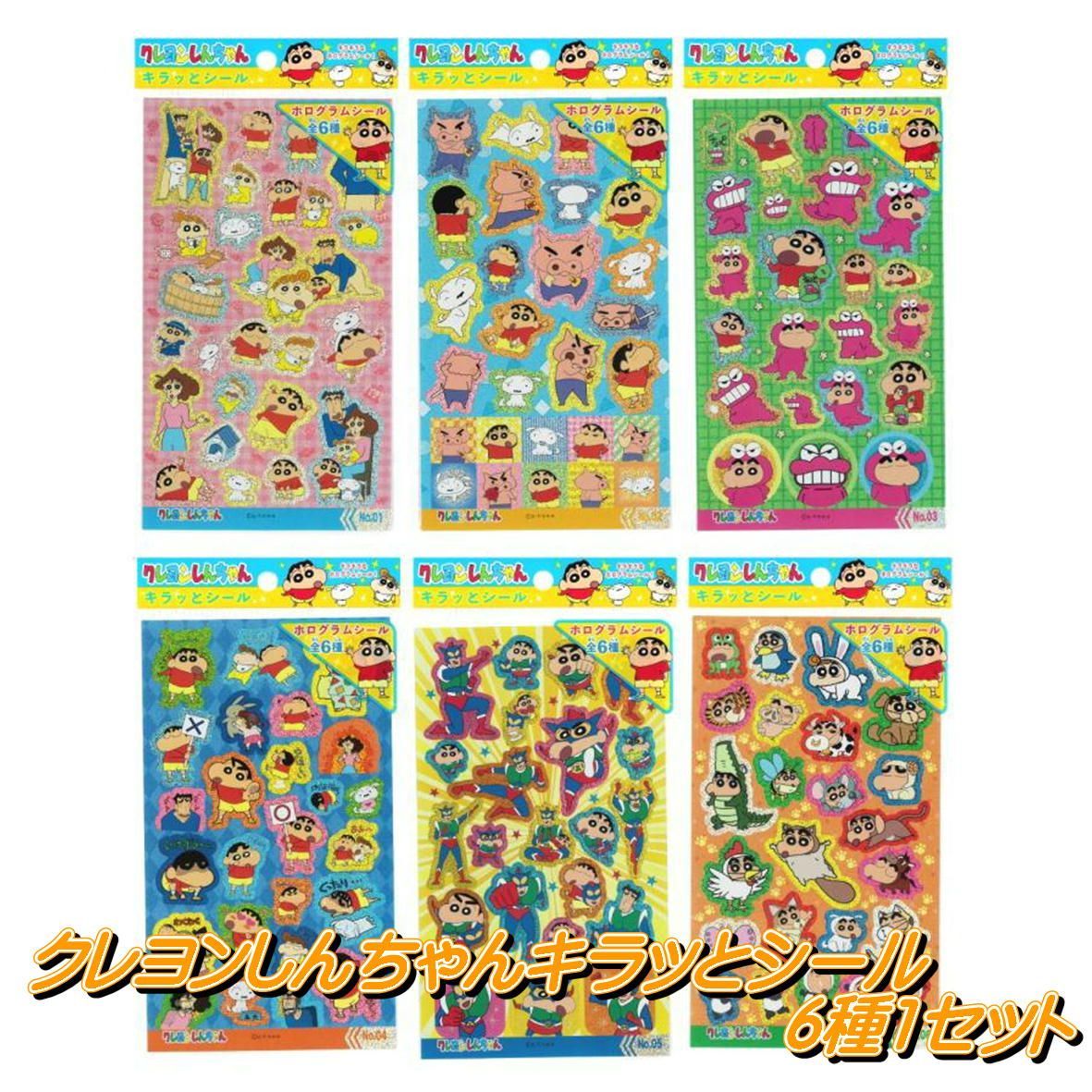 クレヨンしんちゃん 各カラー1枚づつの6シート入り ホログラム キラっとシール 4971413018875 シール クレヨンしんちゃんシール キャラクター ホログラム 6種 各1枚 お祭り 子供に大人気シール 大人気シール シロ ヒマワリ みさえ しんちゃん