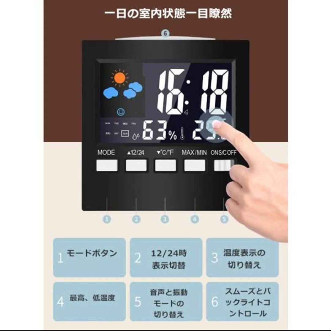デジタル温湿度計 置き時計 目覚まし時計 多機能 大画面 黒色 ブラック