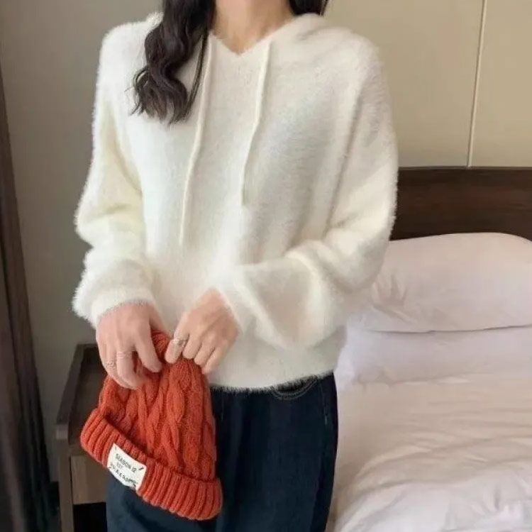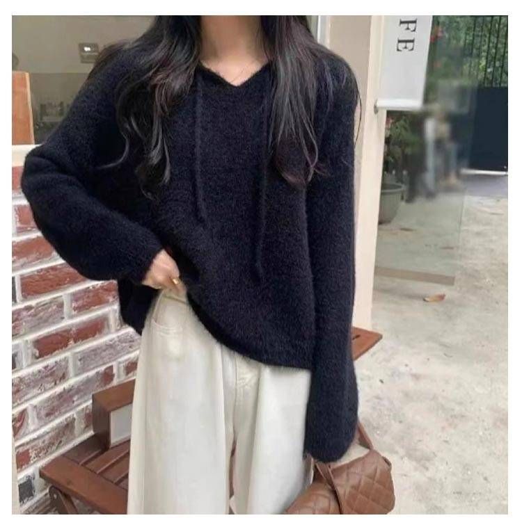 無地のシンプルなレディースニット