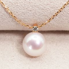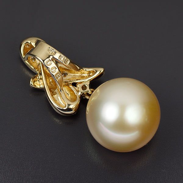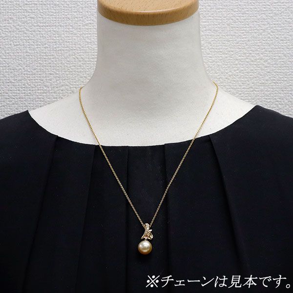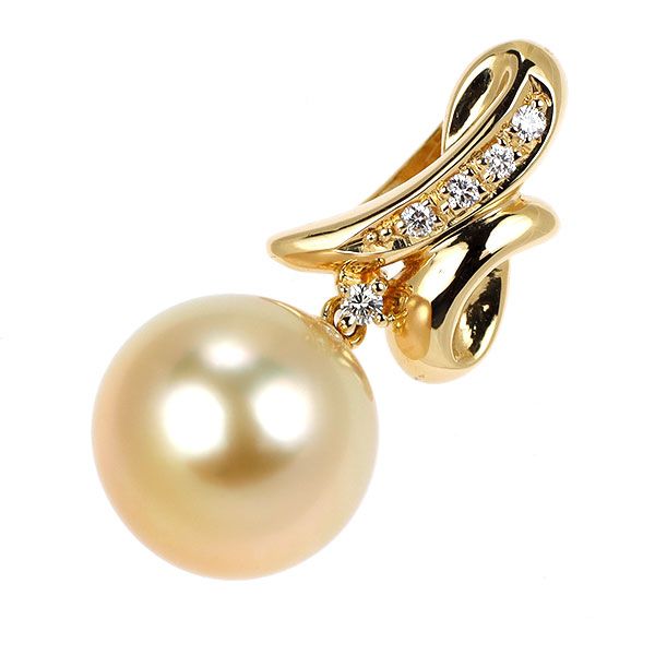 径約11.5mmのゴールデンパールをセットした、存在感のあるペンダントトップです。パールは、特有のえくぼが僅かに確認出来ますが、着用時には気にならない程度。テリと光沢のある美しいゴールデンカラーのものがセレクトされています。しなやかに描く曲線に上質ダイヤモンドの瑞々しい煌めきを添えてより美しく引き立つエレガントなデザイン。華やかさの中に清楚な輝きが映えるゴールデンパールのジュエリーを、田崎真珠のラグジュアリーな逸品でお楽しみください。