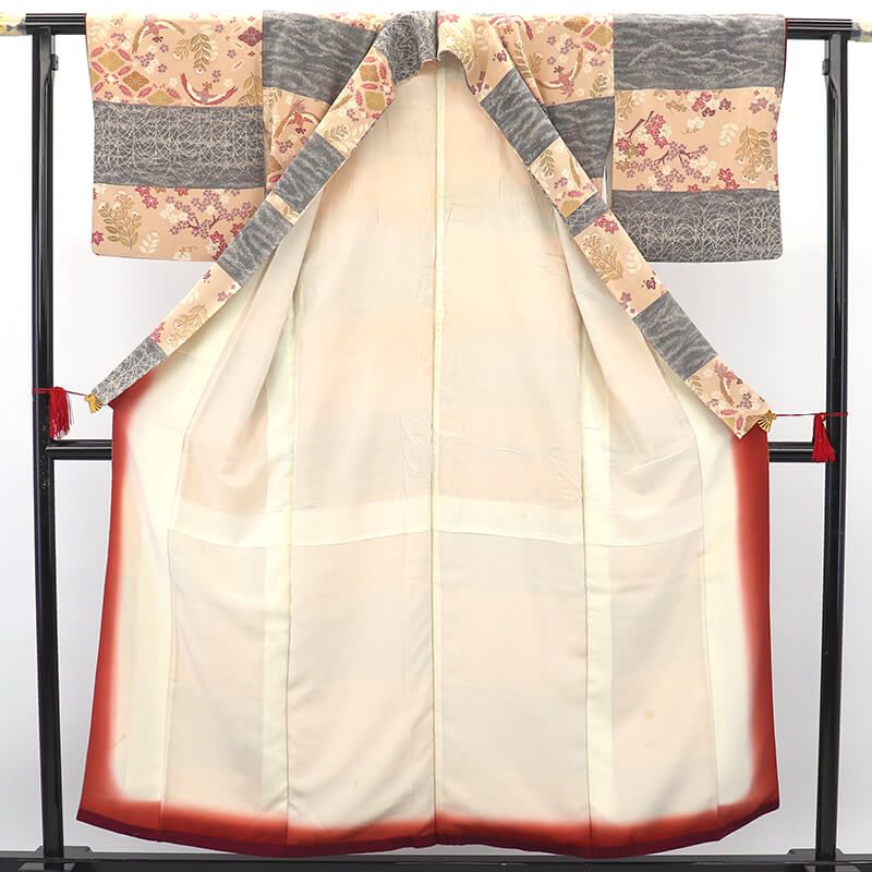 袷着物:着用時期10~5月収納のシワがあります。使用感が多めです。袖口に薄汚れがあります。裾と袖口に、布をつけて補強しております。 上前身頃おくみに、小さな茶色い汚れがありますが、目立ちにくいです。 上前身頃掛衿に、薄茶汚れがあります。 着用時にはわかりづらいです。 後身頃にごくわずかな薄茶いシミがあります。 胴裏・八掛・衿裏に、薄い変色があり、 部分的にシミになっております。 八掛の汚れがは、ちょっと不快な人もいるかと思うシミです。 裏地を気になさらず、ご利用いただける方向けのお着物です。 中古のお着物をご検討のお客様へ中古品をより気持ちよく着る簡易お洗濯『軽洗い』もおすすめです。(返品・キャンセル不可)オプションにてご選択くださいませ。納期に2~3週間頂きます。軽洗いをご選択の場合、ゆとりのある着用日程にてご検討くださいませ。【発送について】大切なお品物を、ぬれ防止のためビニールにお包みし、発送いたします。ご入金確認後、1~3営業日以内に発送手続きをさせていただきます。【ご留意事項】中古品のため、すべて一点限りのご用意となります。気になる点がございましたら、ご購入前にお気軽にお問い合わせくださいませ。