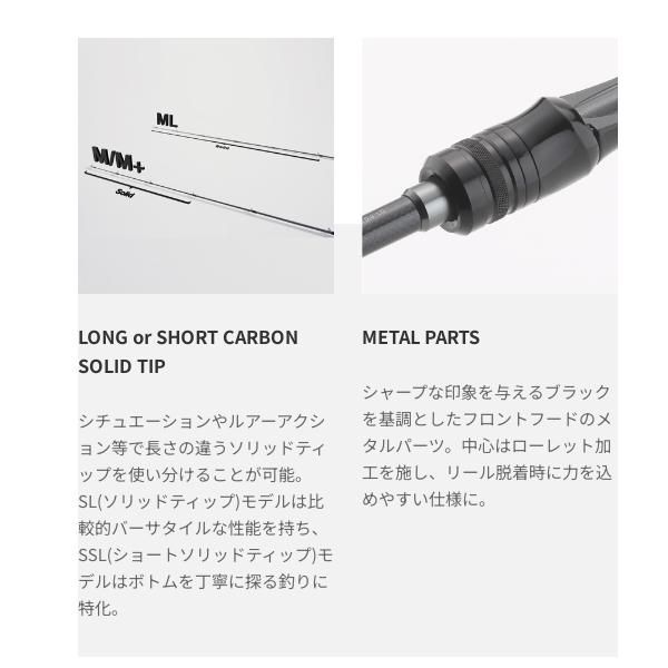 高い携行性に機能性もプラスしたテレスコピック(振出)タイプのチニング専用スピニングロッド(仕舞寸法/59cm)。ロングキャストした先の地質変化も明確に捉え、喰わせの間を入れつつチヌをモノにしてゆく…陸っぱり・ボートを問わず、スピニングタックルの利点を活かした攻めを可能とする一本。“感度と喰わせ”性能を追求したロングソリッドティップ搭載で、様々なボトムの地質変化をしっかりと読み取りながらズル引き、もしくはリトリーブしやすい。また、柔軟性も併せ持つティップはショートバイトも確実にフッキングへと持ち込むことができる。