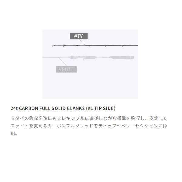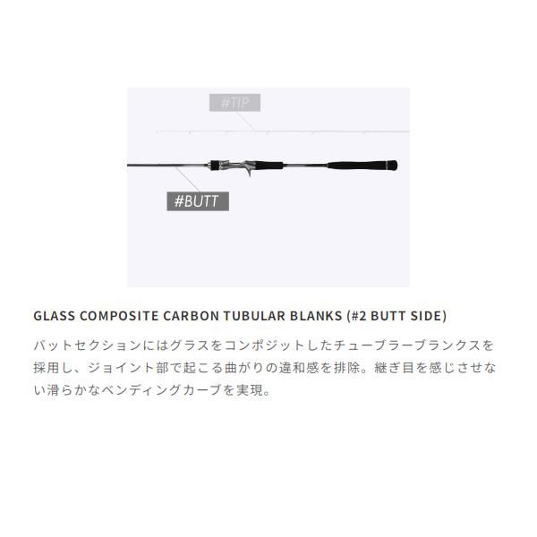 ティップには、しなやかさと強靭さを兼ね備えたカーボンフルソリッド。バットには、高負荷時に粘りと復元性を発揮するグラスコンポジットチューブラーを採用。特性の異なる素材を高精度にハイブリッドしたセンターカット2ピース構造が、タイラバロッドに不可欠な「乗せ」の性能を高次元で体現。異素材の融合が生む未知の曲線を体感せよ。