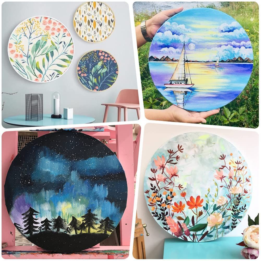キャンバス 丸 画材セット【30cm、25cm、20cm】画板 キャンバス 画材 絵の具セット キャンバスボード ミニキャンバス 油絵 キャンバス 円形 綿化繊混紡 木製フレーム 絵画 油絵 水彩 アクリル 部屋飾り 張りキャンバス 3枚 (円形)